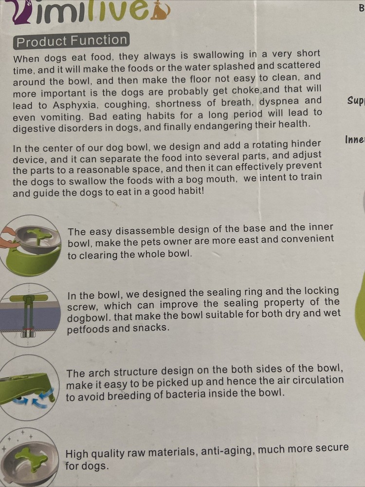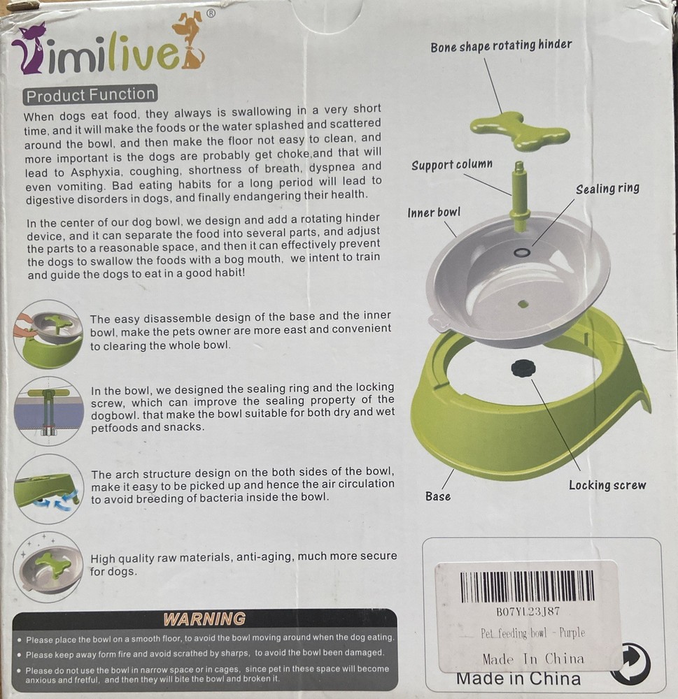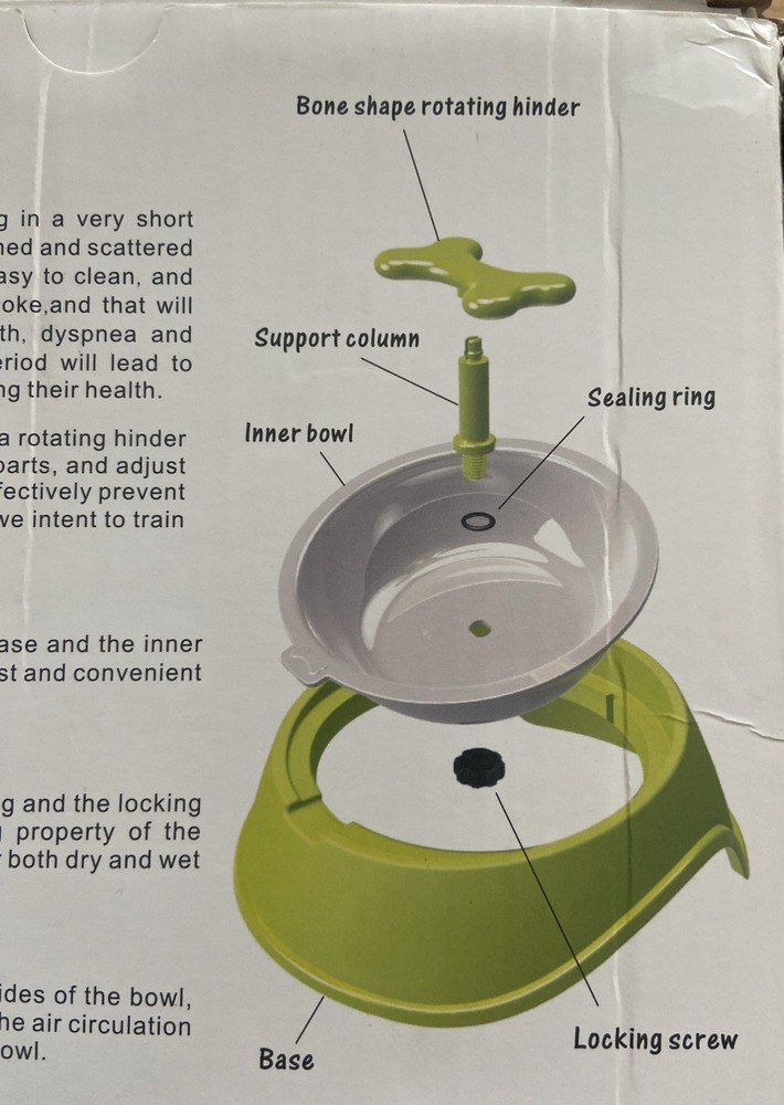When dogs eat food, they always swallowing in a very short time, and it will make the foods or the water splashed and scattered around the bowl, and then make the floor not easy to clean, and more important is the dogs are probably get choked and that will lead to Asphyxia, coughing, shortness of breath, dyspnea and even vomiting. Bad eating habits for a long period will lead to digestive disorders in dogs, and finally endangering their health. In the center of the dog bowl, the design and rotating hinder device, and it can separate the food into several parts, and adjust the parts to a reasonable space and it can be effevtively prevent the dog to swallow the food with a big mouth.