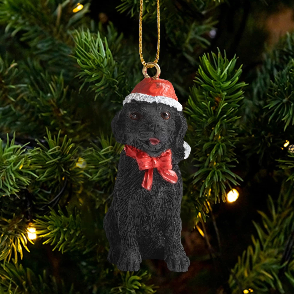 Cute black lab Christmas ornament figurine, Black Labrador retriever with Santa hat and red bow around neck Christmas ornament. Solid labrador retriever ornament made of resin including gold string for hanging on Xmas tree. Cute black lab Christmas ornament figurine, Black Labrador retriever with Santa hat and red bow around neck Christmas ornament Great gift for lab black lover, great stocking stuffer for black lab owner Approximately 3” x 2” x 1” in dimensions Made of resin, hangs on tree with gold string Black labrador retriever statue sitting down with red Santa Hat, festive ornament to add to the Xmas tree