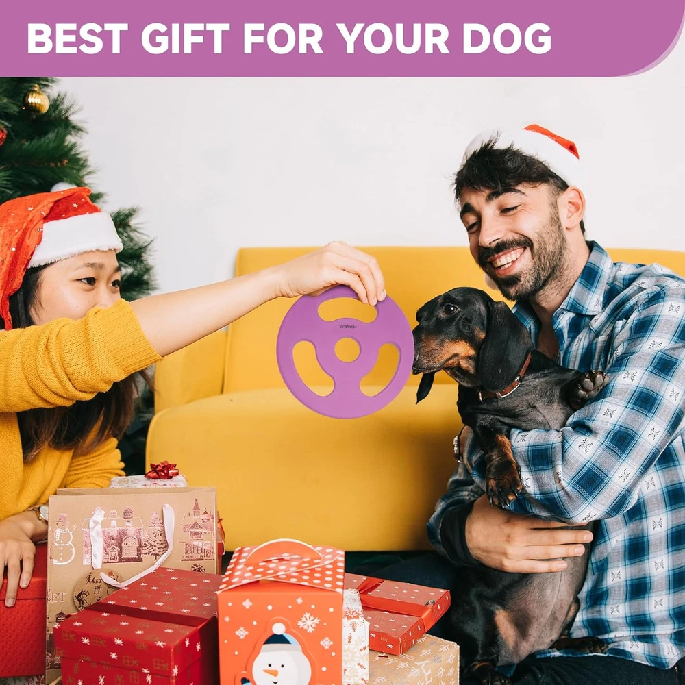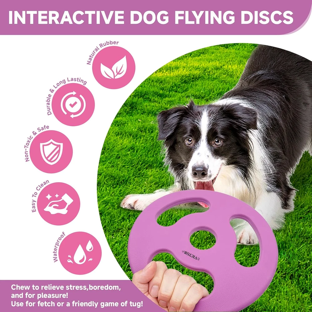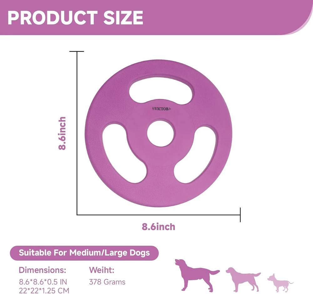 Premium Quality & Durable Material : Made from high-quality rubber, this dog toy is designed to be robust and durable, standing up to regular play sessions. While it's tough enough to handle rough play, we recommend supervising your lovely dog during playtime to ensure prolonged enjoyment. Easy-to-Grip Design: With a unique handle design, it not only allows you to hold the disc easily, but also ensures accurate throwing, allowing you and your dog to enjoy a perfect interactive experience in every game. This design is especially suitable for large and medium dogs, whether it is long-distance throwing or close contact, it can enhance your happy time with your dog. Safety First: We pay special attention to the safety of pets. The surface of the dog fetch toy is carefully designed to ensure smoothness and burrs, avoiding the use of sharp edges or hard materials, so as to ensure that pets have a safe and comfortable experience during the playing or chewing. Easy to Maintain: The flyer toy's surface is easy to clean and can be quickly rinsed after use, keeping it sanitary and extending its life. Regular care and attention will keep it in top condition, which means you don't need to replace the toy as often, providing lasting entertainment and value for your furry friend. Superio Product Service : We are committed to providing excellent after-sales support after you purchase this dog flying disc, whether it is about product usage advice, problem solving or any product service, we will do our best to ensure your satisfaction. Product Description More Choices in Victob Add to Cart Add to Cart Add to Cart Add to Cart Customer Reviews 3.8 out of 5 stars 38 3.8 out of 5 stars 38 4.3 out of 5 stars 77 4.2 out of 5 stars 18 4.2 out of 5 stars 18 4.6 out of 5 stars 6 Price $15.99 $ 15 . 99 $14.99 $ 14 . 99 $12.99 $ 12 . 99 — — $11.99 $ 11 . 99 Material Natural Rubber Natural Rubber Natural Rubber Natural Rubber Natural Rubber Natural Rubber Durability High High High High High High Target Species Large Dogs Medium/Small Dogs All Dogs Large Dogs Medium/Small Dogs Large Dogs Easy Maintenance ✔ ✔ ✔ ✔ ✔ ✔ Easy Maintenance ✔ ✔ ✔ ✔ ✔ ✔