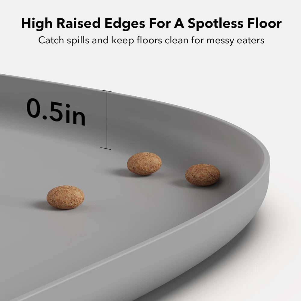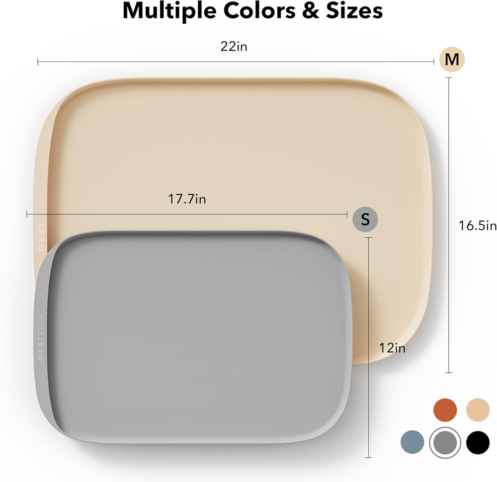 Without BPA Food-grade Silicone: The Cove dog food mat is made from food-grade, safe silicone material that is odorless and with out BPA, perfectly protecting your home and your pet's safety. A Perfect Fit For Every Pet And Bowl: With a range of sizes and colors to choose from, the Cove food mat is a versatile addition to any pet feeding station. The small mat measures 17.7 × 12 in, while the medium option measures 22 × 16.5 in. Not only do they fit perfectly with the PETLIBRO range of smart feeders and fountains, but they're compatible with various bowls and accessories too. Say Goodbye To Dirt And Mess: PETLIBRO pet mats effectively protect your floors with their raised edges, which are 0.59in (15mm) high. These edges collect residues and spills, minimizing dirt and mess. Convenient Pocket Design: Thanks to the side pocket, you can effortlessly collect spilled water and food. The small pocket has a depth of 0.43in (11mm), making it ideal for cat food, while the medium pocket, with a depth of 0.63in (16mm), accommodates larger dog kibble. Say goodbye to messy cleanups with this easy-to-maintain solution. Secure And Waterproof: Keep your floors safe and dry with this 100% waterproof silicone mat, which also works to secure your feeder or water fountain in place. Heat resistant up to 230°C (446°F), this mat is dishwasher safe and easy to clean. So relax and focus on what matters, knowing that your floors are protected. Flexible And Durable: The silicone is both flexible and durable, making it perfect for travel or storage. Its above-average hardness ensures it won't bend or age prematurely, even when exposed to direct sunlight on a windowsill. Compatible Feeder Model: AF001, AF002, AF003, AF005, AF006 single tray, AF008, AF101, AF102, AF103 single tray, AF108, AF203 single tray. Product Description The video showcases the product in use. The video guides you through product setup. The video compares multiple products. The video shows the product being unpacked. Meet The PETLIBRO Cove Pet Placemat-Catch Spills For Easy Clean-up 1 BPA-free Silicone 2 Easy To Clean 3 Stays In Place 4 Built To Last 1 High Raised Edges 2 Easy Mess Collection 3 100% Waterproof 4 Easy To Store Or Carry Sizes That Always Fit Your Setup Small and medium sizes perfectly accommodate our feeder and fountain. The Cove dog food mat is made from food-grade, safe silicone material that is odorless and BPA-free, perfectly protecting your home and your pet's safety. The video showcases the product in use. The video guides you through product setup. The video compares multiple products. The video shows the product being unpacked. Recommended Combination with Pet Placemat Add to Cart Add to Cart Add to Cart Add to Cart Add to Cart Add to Cart Add to Cart Customer Reviews 4.6 out of 5 stars 616 4.0 out of 5 stars 2,425 4.1 out of 5 stars 6,340 4.2 out of 5 stars 9,777 4.0 out of 5 stars 2,778 4.2 out of 5 stars 9,777 4.8 out of 5 stars 2,069 Price $24.99 $ 24 . 99 $56.69 $ 56 . 69 $69.99 $ 69 . 99 $109.97 $ 109 . 97 $69.99 $ 69 . 99 $60.99 $ 60 . 99 $15.99 $ 15 . 99 Feature BPA-free; 100% Waterproof Wireless and Battery Operated APP Control and 5G WiFi HD 1080P Camera Monitoring Rechargable & Durable Battery Easy to Set Up and Program Keep Pet Food Dry and Fresh Recommended Uses for Feeder, Fountain, Pet Bowl Drink water for pets for Pet Dry Food for Pet Dry Food for Pet Dry Food for Pet Dry Food for Feeder to keep Fresh Color Scandinavian Colors White Black/White Black/White Black/White Black/White White Size 17.7'' x 12'' 2.5L/84fl oz 5L 5L 2L 3L 3.1'' x 3.1'' x 0.31'' Material Food-grade Silicone Stainless Steel; Plastic Stainless Steel; Plastic Stainless Steel; Plastic Stainless Steel; Plastic Stainless Steel; Plastic Dehumidification Material