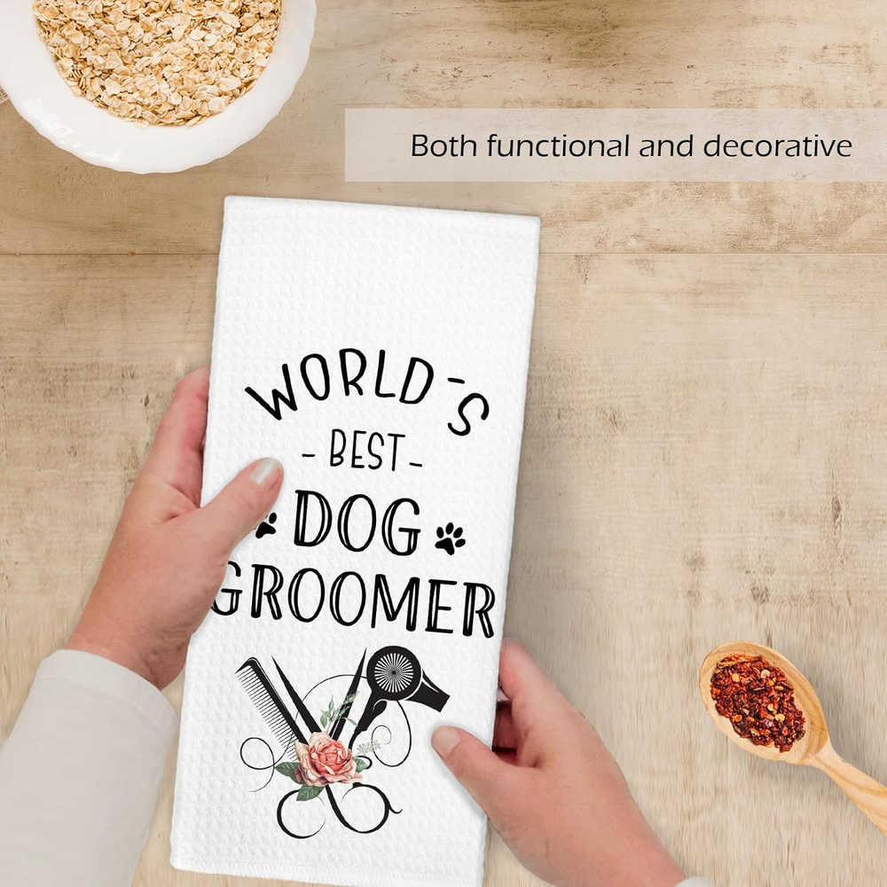 Dog Groomer Gifts Kitchen Towels, Dogs Groomer Gifts for Women Dish Hand Tea Tow
