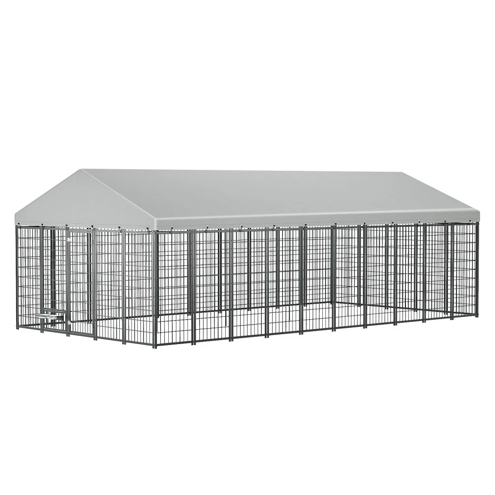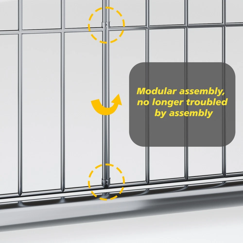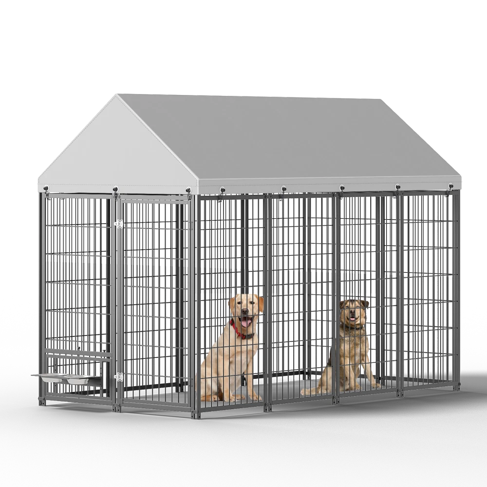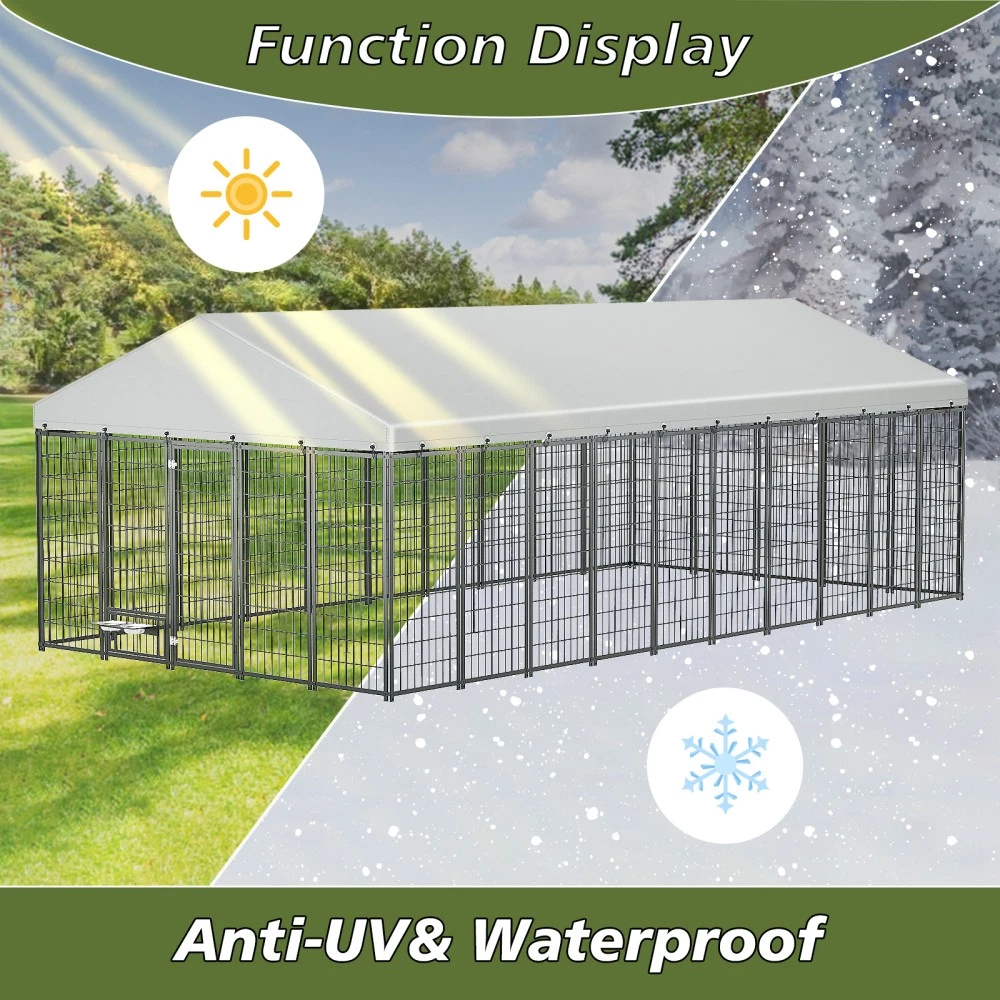 Key Product Specifications Color: Sleek Black Material: High-Quality Iron (Durable & Rust-Resistant) Assembled Dimensions: 7.94'L x 4.13'W x 5.95'H (95.28" L x 50.00" W x 71.65" H) Door Dimensions: 1.8'W x 4.02'H (Easy In & Out for Pets) Product Weight: 83.30 LBS Package Dimensions: 54.72" L x 26.38" W x 7.68" H Package Weight: 88.85 LBS Assembly Time: Approximately 45 Minutes (All Hardware Included) Package Quantity: 1 Box (All Modules Included) Why Choose Our Outdoor Dog Kennel? ✅ Spacious Living Space for Happy Pets Measuring 7.94’L x 4.13’W x 5.95’H, this oversized pet enclosure offers plenty of room for your furry friends to move around, play, and rest freely. The open design ensures excellent ventilation and visibility, reducing anxiety and creating a comfortable living environment. ✅ Reinforced & Secure Structure Crafted from premium iron, this dog cage features a sturdy frame with multiple load-bearing columns for enhanced stability—no wobbling even in windy conditions! The double door lock design provides double security, preventing your pets from escaping unexpectedly and keeping unwanted animals out. ✅ Convenient Feeding Design Equipped with 2 rotating feeders that can be adjusted up and down by 3.9 inches. This thoughtful design allows you to feed your pets easily without opening the main door, saving time and hassle. Perfect for both food and water placement. ✅ All-Weather Protection The advanced roof cover is windproof, UV-resistant, and waterproof, effectively shielding your pets from rain, strong winds, and harsh sunlight. Keep your beloved pets dry, cool, and comfortable in any weather condition—summer, winter, rain, or shine! ✅ Multi-Functional Use Not just for dogs! This versatile enclosure is ideal for raising chickens, ducks, geese, rabbits, and other small to medium-sized animals. Great for outdoor use in your backyard, garden, patio, or farm. ✅ Easy Assembly in 45 Minutes No professional tools needed! All modules can be easily assembled with the included connectors and screws. The door can be installed in any position to fit your specific needs—flexible and user-friendly. Premium After-Sales Guarantee 1 YEAR QUALITY WARRANTY & 30-DAY FREE RETURN/EXCHANGE! We stand behind the quality of our products. If you encounter any issues with the dog kennel within 1 year of purchase, we offer free replacement parts or repair services. Not satisfied? Enjoy a 30-day free return or exchange policy—no questions asked. Shop with confidence! Package Includes 1 x Large Metal Dog Kennel Frame 1 x Weather-Resistant Roof Cover 2 x Adjustable Rotating Feeders All Necessary Connectors & Screws 1 x Detailed Assembly Instruction Manual Invest in a durable, safe, and comfortable home for your pets today! Add to cart now and give your furry friends the outdoor space they deserve.
