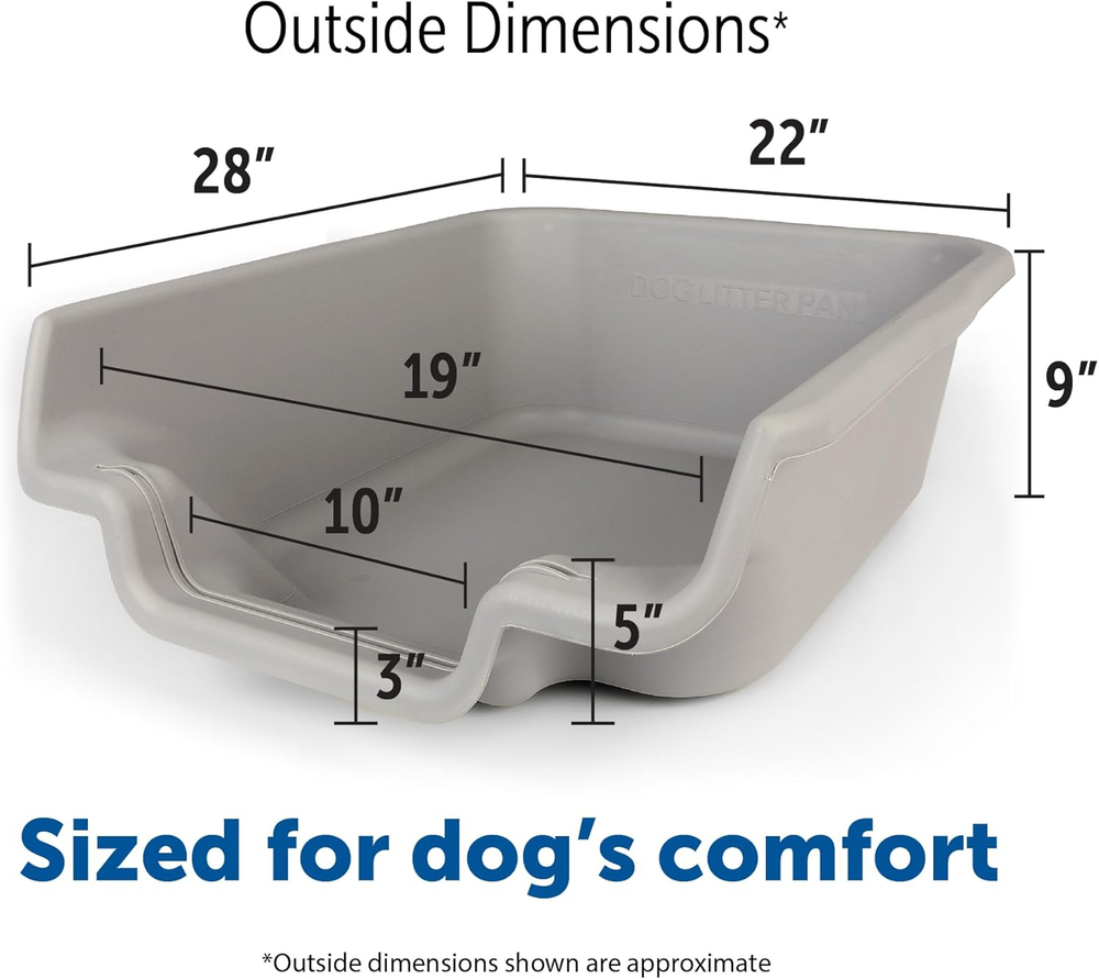Store New Arrivals Add to Favorite View Feedback Dog Litter Box, Misty Gray Color, Extra Large Size, Durable & Pet Safe Puppy Litter Box, Indoor Open Top Entry Dog Litter Pan, Comfortable for Dogs, Great for Dogs up to 35 Lbs Description Age Range Description Puppy Style Durable Item Dimensions LxWxH 28 x 22 x 9 inches Color Misty Gray Product Dimensions 22"L x 28"W x 9"H Material Polypropylene (PP) Specific Uses for Product Indoor Item Weight 3.55 Pounds With Lid No Target Audience Keyword house-cats, rabbits Size Extra Large Is Discontinued By Manufacturer No Item Package Dimensions L x W x H 29 x 22 x 9 inches Number of Items 1 SPECIALLY DESIGNED FOR DOGS: This dog litter pan is designed in such a manner that it can be used with both paper litter and puppy pads. This dog litter box is convenient for you and comfortable for your dog. GREAT ALTERNATIVES FOR WORKING FAMILIES: The dog litter tray is a great alternative for those who are living in an apartment. The puppy always has a place to go when you can't take them outside, which helps to avoid accidents. OPEN TOP LITTER PAN: Open top litter pan to ensure healthy usage (enclosed spaces might cause behavior issues). Plus, the open top entry and the low entrance design makes it easy for your puppy to get in and out. The dog can see around him in a vulnerable position and feels safer, thanks to its low side design. SMART & DURABLE DESIGN: This innovative litter box is made with durable, easy-to-clean materials. The perfect way to keep your puppy's potty area clean and tidy! Available in multiple sizes and color options to choose from according to your dog size. EASY TO USE: This pet safe litter box is very easy to handle. Please email for any additional concerns prior to ordering. Do not expect dogs to use the pan without training. Product description ABOUT US We offer the best prices around on high quality products. Our E-store includes media such as books, movies, music and games while offering electronics, toys, sporting apparel, clothing, tools, general home, garden items and more. SHIPPING We are always working hard to ensure your package arrives as soon as possible. Please understand that some factors like weather, high postal traffic, and the performance of shipping companies are outside of our control. We offer free shipping to the lower 48 states and ship within 2 business days of payment, usually sooner. We do not accept P.O. Boxes. Please provide a physical address. RETURNS We offer a 30-Day Return Policy on items which you are not completely satisfied with. You have the option for a full-refund or an exchange of the item. No returns are available on items shipped outside of the USA. PAYMENT We accept PayPal. CONTACT US This page content is yet to come Please ad us to your favorite seller and visit again later Thank You