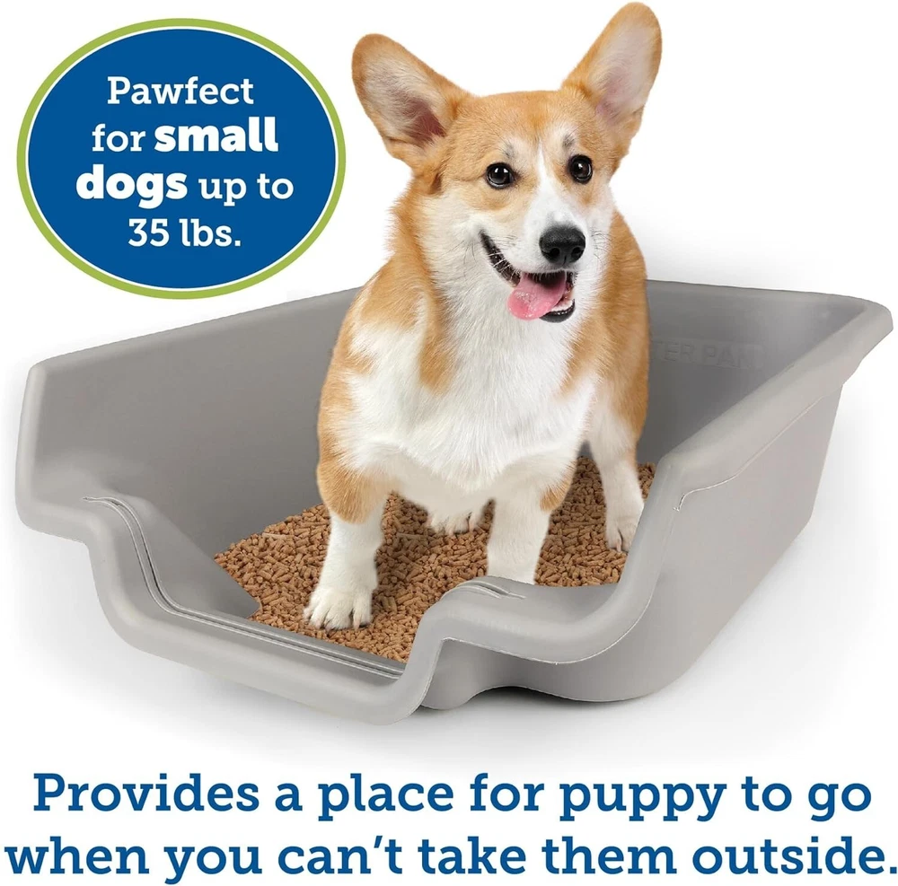 Dog Litter Box, Misty Gray, Extra Large Size, Durable & Pet Safe Puppy Litter Box, Indoor Open Top Entry Dog Litter Pan, Comfortable for Dogs, Great for Dogs up to 35 lbs SPECIALLY DESIGNED FOR DOGS: This dog litter pan is designed in such a manner that it can be used with both paper litter and puppy pads. This dog litter box is convenient for you and comfortable for your dog. GREAT ALTERNATIVES FOR WORKING FAMILIES: The dog litter tray is a great alternative for those who are living in an apartment. The puppy always has a place to go when you can't take them outside, which helps to avoid accidents. OPEN TOP LITTER PAN: Open top litter pan to ensure healthy usage (enclosed spaces might cause behavior issues). Plus, the open top entry and the low entrance design makes it easy for your puppy to get in and out. The dog can see around him in a vulnerable position and feels safer, thanks to its low side design. SMART & DURABLE DESIGN: This innovative litter box is made with durable, easy-to-clean materials. The perfect way to keep your puppy's potty area clean and tidy! Available in multiple sizes and color options to choose from according to your dog size. EASY TO USE: This pet safe litter box is very easy to handle. Please for any additional concerns prior to ordering. Do not expect dogs to use the pan without training.
