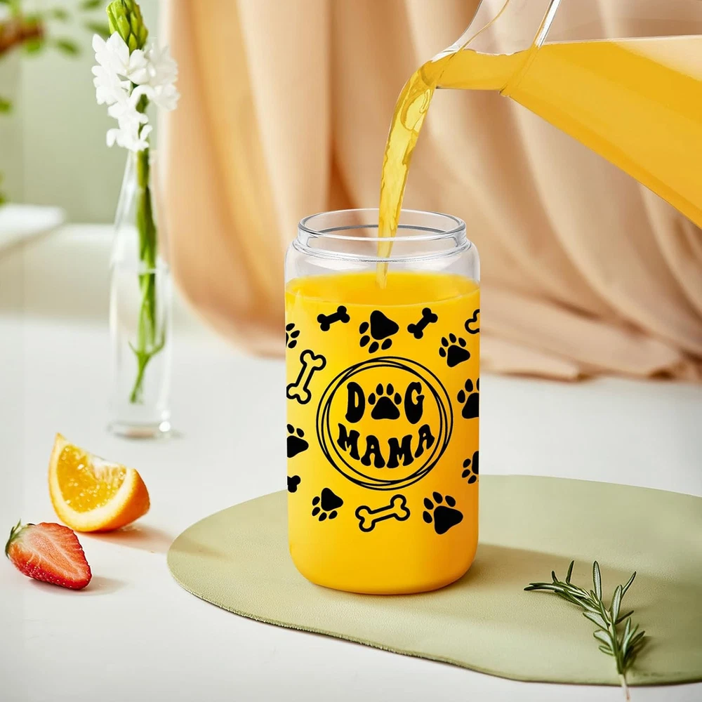 Product Description Proud to be a pet mama - Show off how much you love your pets with a coffee glass that's sure to draw a laugh. This witty coffee tumbler could also make an excellent gift for a fellow dog mom! Dog mom glass cups with bamboo lid and straw - A clean silhouette nods to the classic container in this clever mason jar. Our lovely "DOG MAMA" not only decorate the jar, but also your coffee time. 16 oz utility mason jar mug, high quality glass, classic and durable, perfect for iced coffee mugs. Lead & BPA free - Made with high - quality durable glass that is lead & BPA free, the glass tumbler with straw and lid is suitable for any hot and cold beverages. Thanks to the bamboo lid with the silicone ring, you can enjoy your drink without worrying about spills. This glass cup is perfect for espresso, cappuccino, lattes and everything in between! Multi purpose glass can cup - The travel glassware Great for any Occasion, any hot and cold drinks. It is widely loved by families, kitchen, breweries, cafes, bars and restaurants. You can use it to make perfect tea, boba bubble Pearl Milk Tea, soda, water, iced coffee, smoothie, fruit juice or any other interesting holiday drinks. Environmental protection and service - Our cute reusable dog mama cups with lids and straws are eco-friendly and do your part to protect the environment. Each set of coffee glasses has passed the quality inspection, if you receive a jar glass with lid and straw, broken or unsatisfactory, please feel free to contact us, we will provide you with the perfect solution! In order to keep the pattern of the cup body longer, it is recommended to hand wash at room temperature or in cold water. GIFTS FOR DOG MOM Looking for the ideal gift for a dog lover? Whether it's for a birthday, Mother's Day, or just to say "thank you," this glass cup is a perfect choice. The "DOG MAMA" print adds a personal touch, making it a unique and thoughtful present for any occasion. DOG MOM GIFTS FOR WOMEN Celebrate the special bond between a dog mom and her furry friend with our beautifully crafted glass cup featuring a bamboo lid and the charming "DOG MAMA" print. This elegant and practical cup is designed to bring joy to any dog-loving woman's daily routine. This glass cup is an excellent choice for birthdays, Mother's Day, or any special occasion. Show your appreciation and love with a gift that combines beauty, functionality, and a heartfelt message. From enjoying your morning coffee to winding down with evening tea, this glass cup is versatile and perfect for any occasion. GIFTS FOR: Dog Mama Gifts Dog Mom Gifts for Women Dog Mom Dog Mom Mothers Day Gifts ELEVATE YOUR BEVERAGE EXPERIENCE Whether you love hot drinks like coffee and tea or cold drinks like iced coffee and smoothies, the Glass Cup with lid is ready to be your new favorite sipping companion Dog Lovers Gifts for Women A perfect present for any occasion, this glass cup is an ideal gift for the dog-loving women in your life,Whether she’s sipping her morning coffee or enjoying a refreshing iced tea, this beautiful cup will make every moment more special. Gift her a token of appreciation that’s as enduring and heartwarming as her bond with her dog. Suitable for Cold Drinks This stylish "DOG MAMA" glass cup is perfect for your refreshing cold drinks. Its high-quality glass ensures durability and elegance, keeping your beverages cool and enjoyable. Ideal for iced coffee, smoothies, or any chilled beverage, it's a must-have for dog moms who love to sip in style. Suitable for Hot Drinks Enjoy your favorite hot beverages with this charming "DOG MAMA" glass cup. Made from premium glass, it can withstand high temperatures, making it perfect for hot coffee, tea, or cocoa. Its sturdy design ensures a comfortable grip, allowing dog moms to savor their drinks in warmth and style. CARE INSTRUCTIONS: PACKAGE INCLUDES: 1 x 16oz Can Glass, 1 x Matching Bamboo Lid, 1 x Reusable Stainless steel Straws and 1 x Straw Brush. The straw brush helps you clean the inside of the drinking straw well. The lid is closed shut with a silicone seal, to avoid spilling on the go.