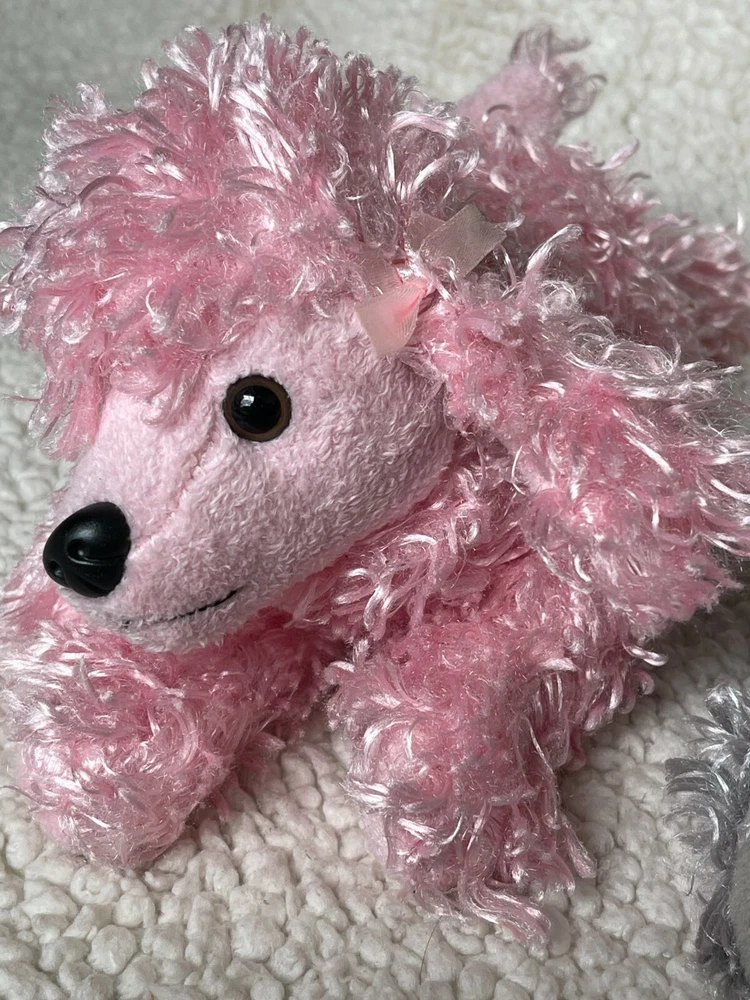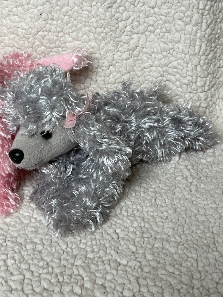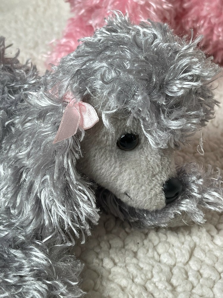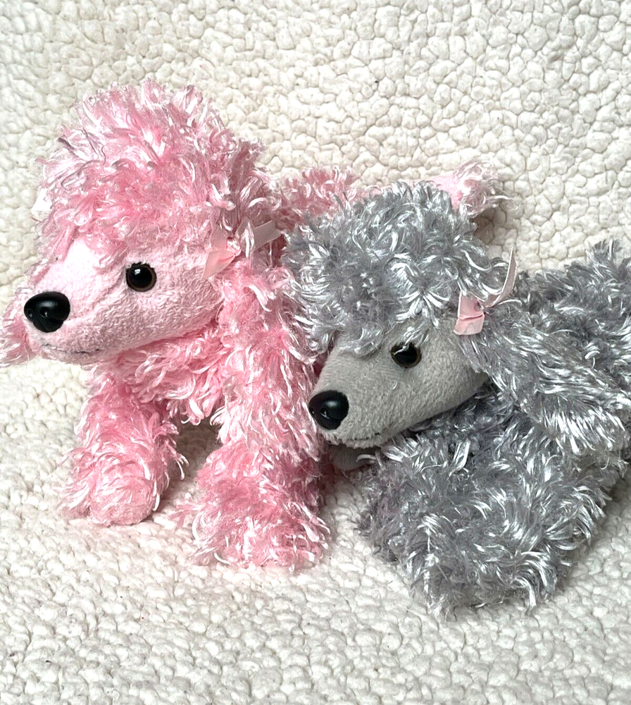2 Poodles Pier 1 Imports Pink and Gray Plush puppy dog Stuffed Animal curly shaggy fur. Lot of 2. Please review the photos thoroughly for condition. Animal and smoke free home.