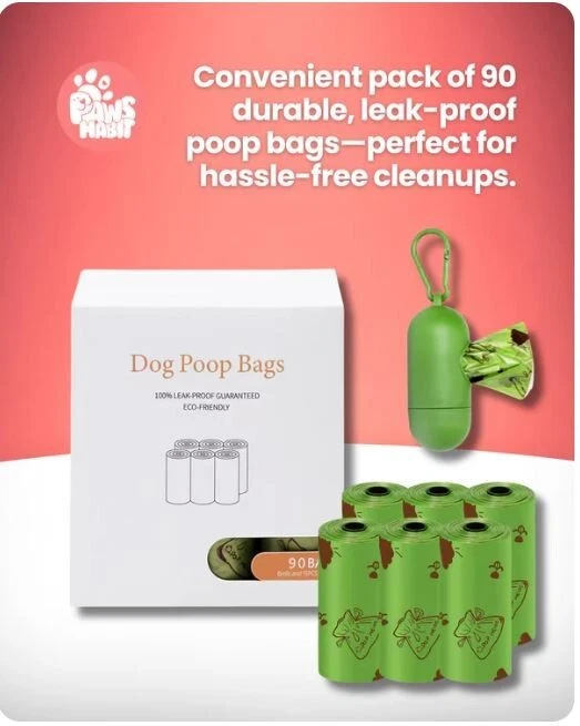 Free eBay listing template designed by dewiso.com Dog Poop Leak Proof Bags with Dispenser and Leash Clip, Unscented, 90 Count, 13 Inch x 9, Green Keep your walks hassle-free with our Dog Poop Leak Proof Bags, featuring a convenient dispenser and leash clip. These high-quality, unscented bags are designed to be strong, durable, and leak-proof, making cleanup quick and easy. The pack includes 90 bags in a fresh green color, each measuring 13 inches x 9 inches, providing plenty of room for mess-free disposal. With the handy dispenser and leash clip, you'll always be prepared, whether you're on a stroll or at the park. Perfect for dog owners who value convenience and reliability. Contact us We can be contacted at any time through eBay messages if you have any questions, comments or product requests. We will respond to you within 24 hours and do our best to help you out! We encourage our customers to contact us with any questions or concerns! We'd like to be sure you are completely satisfied with your purchase. Thanks For Shopping!