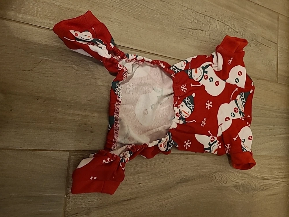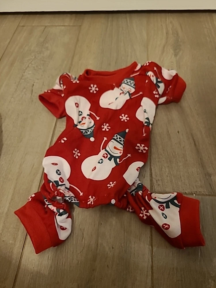 Get your furry friend in the holiday spirit with these adorable pet pajamas! Featuring a festive design of snowmen and a vibrant red color, these pajamas are perfect for your pup's Christmas day. Made from soft and comfortable cotton material with added stretch for a snug fit, they are guaranteed to keep your dog cozy and cute all night long. Ideal for small dogs and puppies, these pajamas are available in size XS. With a theme of Christmas and a material of cotton, they are a great addition to your pet's wardrobe. Whether you're looking for a cute gift or just want to keep your dog warm and stylish during the holiday season, these pet pajamas are a must-have.