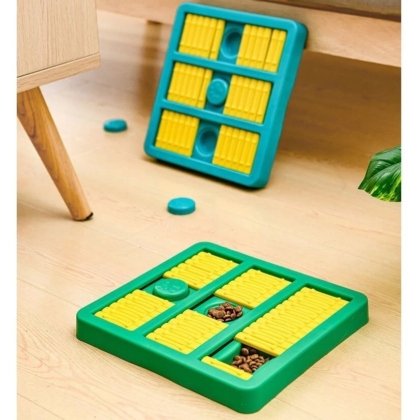Dog Interactive Toy, Dog Puzzle Toy, Treats toy, Feeding Toy, Fun Toy for Dog, IQ Toy for Dog Smell a puzzle toy Size: 9.5" x 9" x 1.1" A fun dog puzzle and a slow-feeder dog tray. Give your dog early training and play smart. Instructions for use: Dog move sliders with his/her paws and nose to reveal treats. *This puzzle toy can help your dog exercise his/ her sense of smell. * It can help reduce destructive behavior by exercising his/her mind. * It can be used as a slow food tray to make eating time longer and more interesting. * Great Toys for reducing Dogs' boredom. Warning!!! Always Supervise your dog closely. DO NOT leave your dog alone with this puzzle. DO NOT let your dog chew on the puzzle. Inspect for damage and remove if broken. This product is for dogs only. This product is not a children's toy. FEEL FREE TO CHECK OUR PET CARE BUNDLE IN OUR STORE