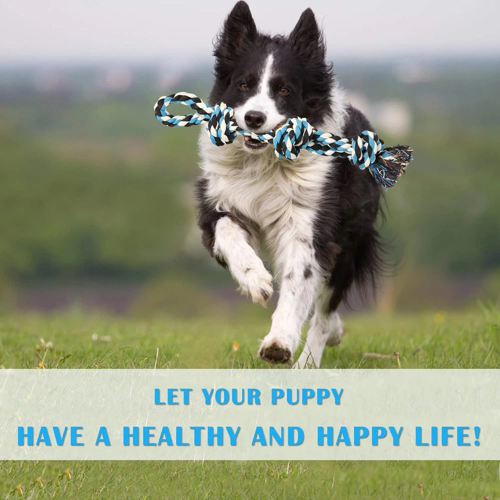 Durable and Safe: UPSKY dog chew toys are made of 100% natural washable cotton, free of odors and chemical dyes. The sturdy and soft dog toy gives the dog a comfortable chewing feel, your pet can chew and play with confidence. Dental Cleaning: Doggies get teeth cleaning, gums massage, and stress relief by chewing these ropes. They can stay healthy and happy every day! Great Fun: Tightly woven twists and strong knots allow our dog toy to withstand aggressive bites. The sturdy rope toy is perfect for a lonely dog to play at home, play tug of war with you, or as an outdoor dog toy. It must be your dog's favorite toy. Great Idea: Two oversized rope toys, as a surprise for dogs every day, not only can focus the dog’s attention and forget boredom, but also help to establish a better friendship between you! Designed for Large Dogs: Designed for medium to large dogs and aggressive chewing, Perfect for Tug of War, Toss and Fetch Games, and Teething Dental Health. These toys will bring your dogs hours and hours of entertainment and exercise. Product Description Large Dog Rope Chew Toys Our dog rope toys are mainly suitable for medium and large dogs. Of course, it also applies to some puppies! UPSKY 2 Pack Dog Rope Toys Almost all dogs need to be accompanied. When you play with dogs, UPSKY dog rope toys will become the best gifts. They are built to be sturdy with a high-quality 100% cotton fabric so that you and your dog will get great use and enjoyment from them. Perfect Size for medium to large dogs More resistant and sturdy Tightly woven kinks and sturdy knots allow our dog toy stand up aggressive bites. This dog toys set is best for different occasions: from fun indoor activities to outdoor games with your dog! If you're looking for sturdy toys for your dog ... Don’t wanna bore your dogs? Want to help them establish correct chewing behavior? Bought lots of toys which were all quickly torn apart? Give them UPSKY rope toys. Our toys can focus the attention of dogs and relieve the stress of dogs! Stress relief and create entertainment Clean their teeth and maintain oral health Perfect for Tug of War, Toss and Fetch Games Exercise and prevent obesity