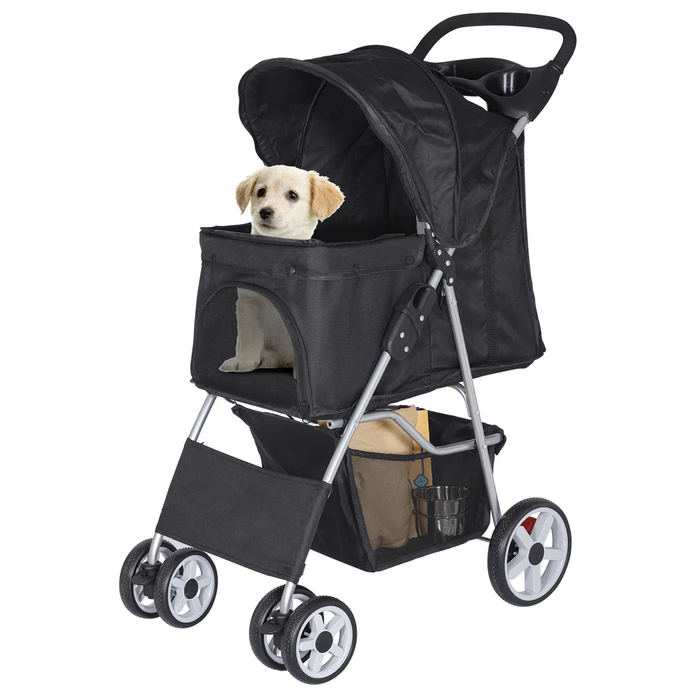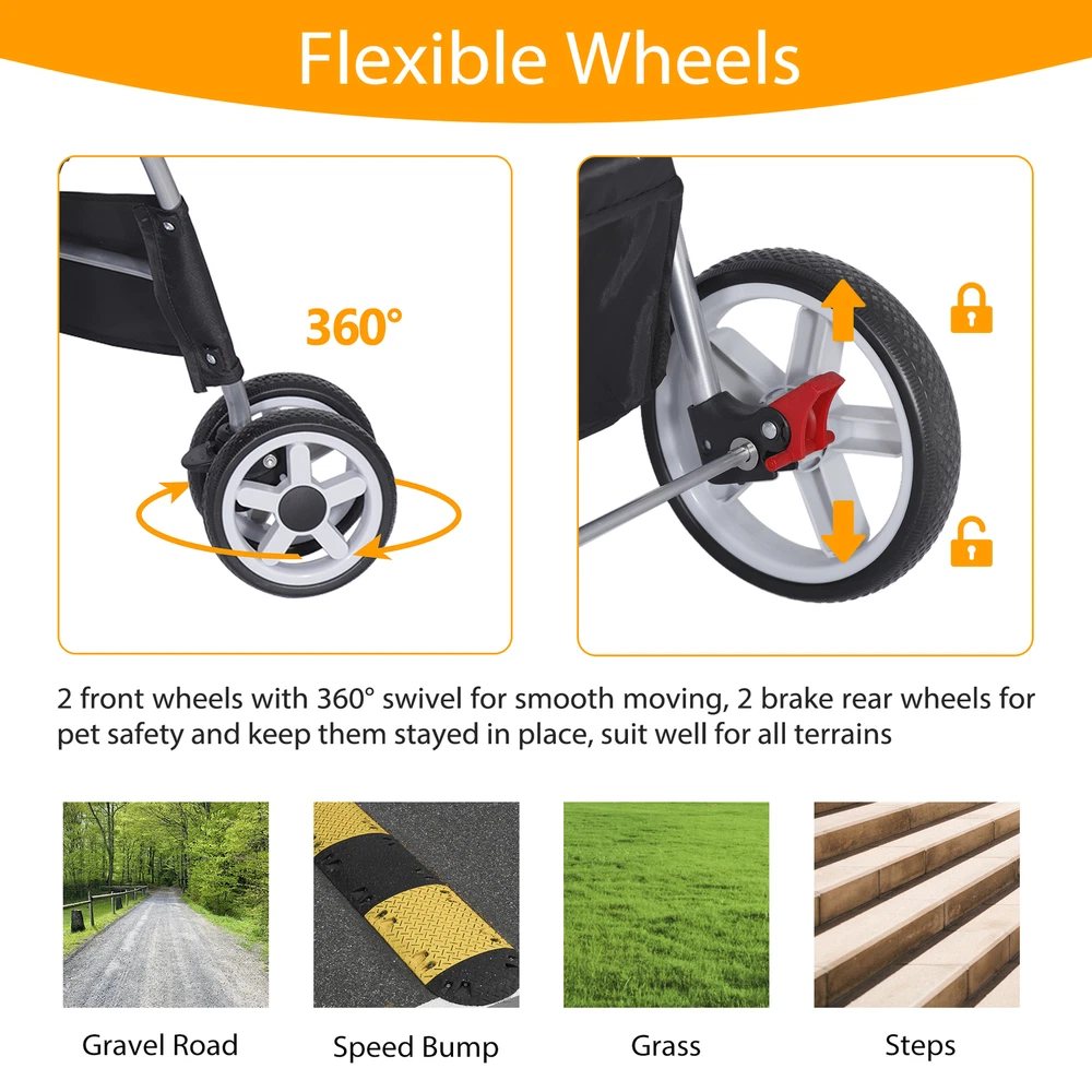 Dog Stroller Travel Folding Carrier Small Medium Cat Pet 4 Wheels w/ Cup Holder