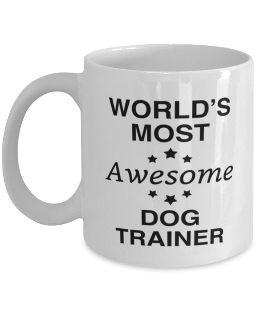 Dog Trainer Funny Coffee Mug Worlds Most Awesome Dog Trainer - White Coffee Mug Product Details.. This high quality 11oz. ceramic white mug has a premium hard coat that provides crisp and vibrant color reproduction sure to last for years. Perfect for all hot & cold beverages. The highest quality printing possible is used. It will never fade no matter how many times you wash it. Material: 100% Ceramic. Print both sides. Dishwasher and Microwave Safe. High Gloss + Premium White Finish. Printed in the U.S.A. Personalized & Custom. We support personalized and custom mug to add custom, when placing an order, you can add notes to the "order note" in shipping address section. Also you can contact us directly via message. Shipping Info. Ready to ship in 1 to 2 business days, All products are made-to-order and proudly printed in the United States. Shipped by USPS and DHL, You will receive your order in 5-7 days. Replace & Refund. All products are defective during shipping broken, chipped will be replaced free of charge. You are not satisfied with the product, we will refund 100% money to you. If any other issues arise, please do not hesitate to message, we would be more than happy to assist you.