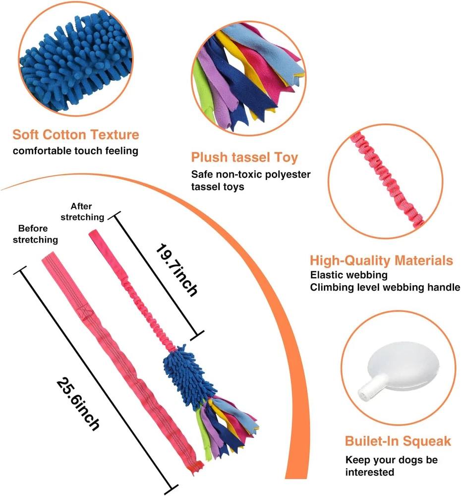 Simple Fun Dog Toy and Training Assistant: The wodoca dog tug toy is a brilliant dog tug toy for building agility, practicing recall, boosting motivation, and creating an urge to play. It is suitable for all dogs of all ages, from tiny tuggers to large dog breeds Safe and Sturdy Material: This dog toy is made of high-quality chenille .Rock climbing grade elastic band is strong,flexible and durable.The dog tug toy is having a squeaker inside the material which is very suitable for dog fun,dragging, chewing,shaking,war and grapple Multifunctional Interactive Dog Toys: This dog rope chew toy has many functions.You can race with the dog, reward and play anytime. Remember the handle is for you, the bite tug is for dog Teeth Clean & Keep Health: This rope chew toy will get teeth cleaning and won't chew your shoes or furniture when they have these toys! It is also great for teeth puppies. Which will keep them healthy and happy The Best Gift for Your dogs: This dog chews rope toy is most suitable for different occasions from fun indoor activities to outdoor games with the dog. It is very suitable as a gift for dogs, allowing dogs to experience different pleasures. If you have any questions about our dog toys, please contact with us to get an after-sale service, we will give you a satisfied response within 24 hours Product Description WODOCA-Goods for pets created with love All Dogs Can Benefit from the Well-designed Dog Toys As dog parents, we know that our four-legged friends are more than just creatures that we share a space with. They are our companions. The ones that we turn to when we are having a bad day. However, when they feel lonely, we may not always be with them. But safe, attractive, durable dog toys can become their permanent companions, relieve their loneliness or anxiety. wodoca designed this toy specifically for dogs! ! It is suitable for all small to medium dogs and solves teething and anxiety problems in dogs. This dog chew toys squeaks to create more chewing fun for dogs. About wodoca wodoca is a professional manufacturer of the design and production of pet products. Each of our team has a cute pet, they are our friends and we love them! WODOCA's mission is to provide natural, safe and practical products for pets to lead a better life. Professional Love Natural, Safe and Practical Why your Dog needs this Toy? Prevent dogs from biting furniture. Clean dog's teeth and keep mouth healthy. Reduce anxiety and prevent boredom. Prevent obesity and increase exercise. This dog rope chew toy has many functions 1. Great fun and helps reduce anxiety in dogs 2. Teeth clean & keep health 3. The Best gift for your dog 4. High-quality material, safe and strong Suitable for indoor and outdoor Use the leash to enhance the fun of the toy, you can interact with your dog, ttug of war, chewing, shaking, toss and fetch, train your dog's jumping and reflexes, play together.