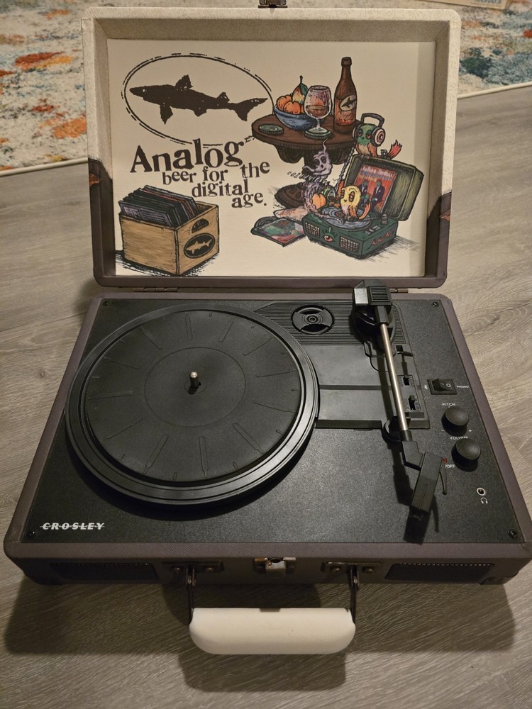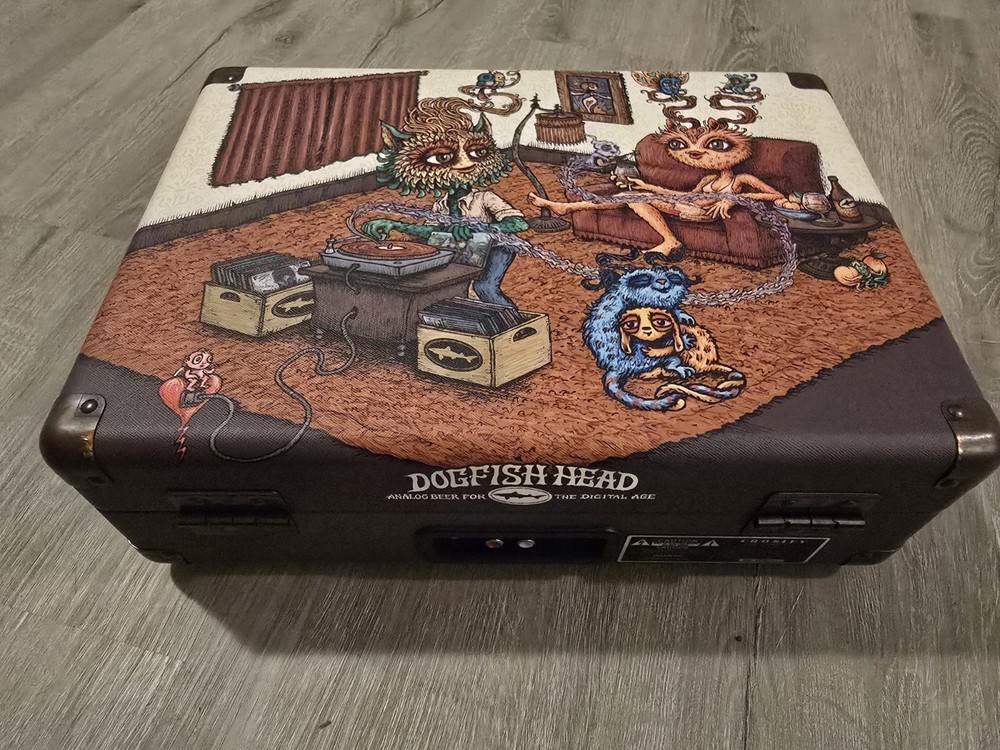 The Dogfish Head Analog Crosley Cruiser Bluetooth Record Player CR8005D Marq Spusta is a stylish and unique record player designed by Crosley in collaboration with Dogfish Head and artist Marq Spusta. With Bluetooth connectivity, this player allows for convenient wireless streaming of music from your devices. The design combines retro aesthetics with modern technology, making it a standout piece for any home audio setup. The collaboration with Dogfish Head adds a touch of exclusivity and character to this one-of-a-kind record player.