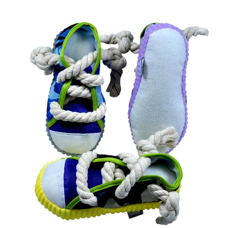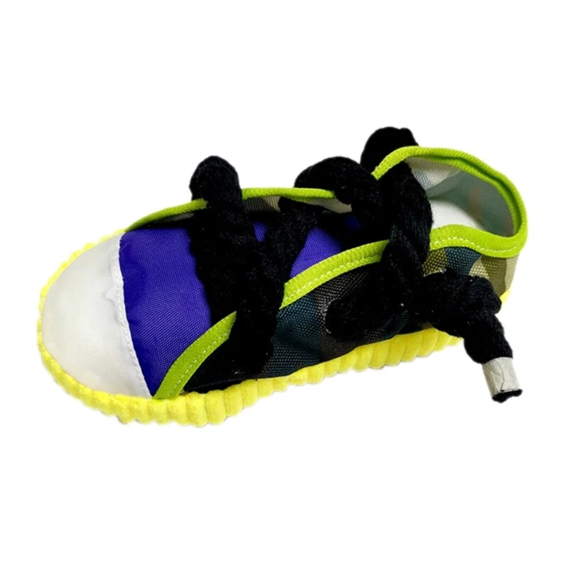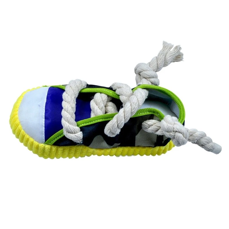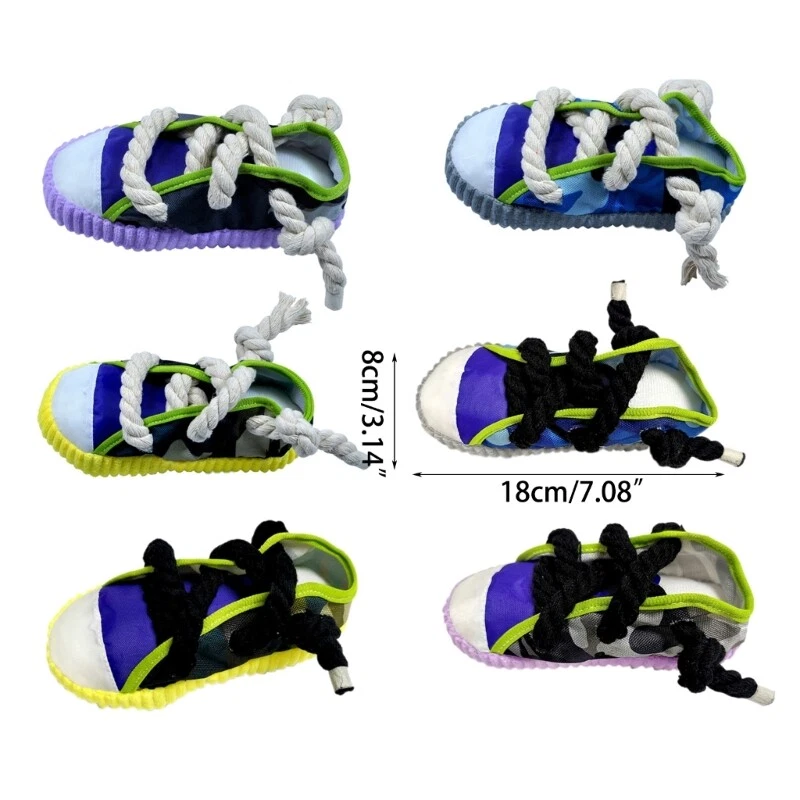 Features: This pet dogs toy shoe with sound is perfect for keeping your furry friend entertained and happy! Made of soft plush material, this shoe features a BBsounder and a round ballbell in the soles to make irresistiblesounds that will your dogs attention. Great for dogs of all breeds and size, this toy is especially suitable for those who are easily bored or anxious when left alone home. Whether you are looking to distract your puppy during a long car ride, or keep busy while you are work, this shoe toy is the perfect solution. The bright color and unique rope make a fun addition to any dogs toy collection! Specifications: Material: Plush Product Dimension: approx. 18x8cm/7.08x3.14inch Option: 6 optional as pictures shown,please your preference Package Includes: 1x Dogs Chew Squeak Plush Toy note: Please allow 1~2cm error due to manual measurement. please make sure you do not mind before you bid. Due to the difference between different monitors, the picture may not reflect the actual color of the item.