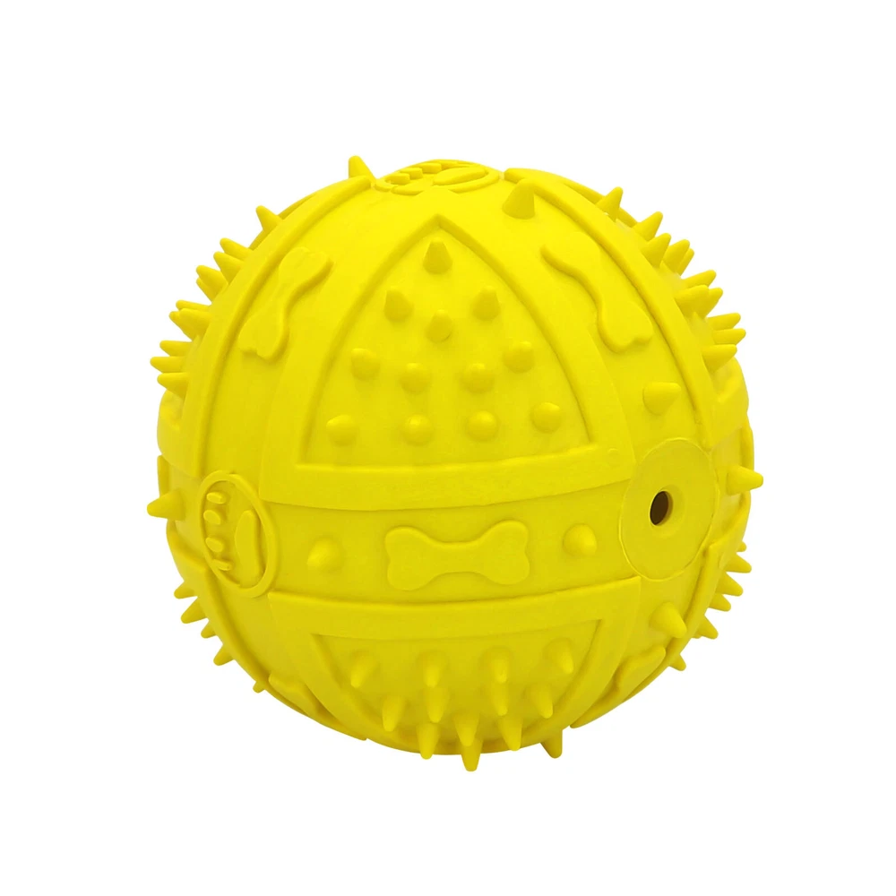 Dog Squeaky Balls Toys For Aggressive Chewers Large Breed Balls Interactive Dog Ball Toy Pet Training Features: Featuring high toughness and resistance, this dog chew toy can achieve long term use and do no harm to your gums and teeth. Characterized by built-in sensitive sounding device, this dog squeaky toy can stimulate the dogs interest, satisfy your dogs chewing instinct, reduce anxiety and destructive urges to chew. Made of high-quality rubber material, it is durable to use. The diameter of the product is 9cm. It is suitable for both indoor or outdoor to play wirh your pet. Product Description: Material: Rubber Color: Yellow,Red,Purole,Orange Size:Diameter 9cm/3.54" (Approx.) Package Includes: 1 x Dog Squeaky Toy Notes: Due to the light and screen setting difference, the items color may be slightly different from the pictures. Please allow slight dimension difference due to different manual measurement.