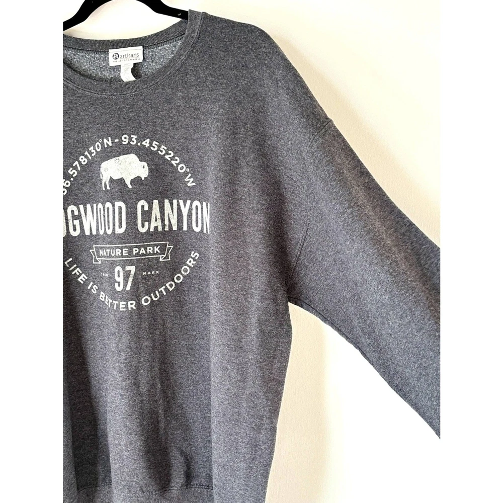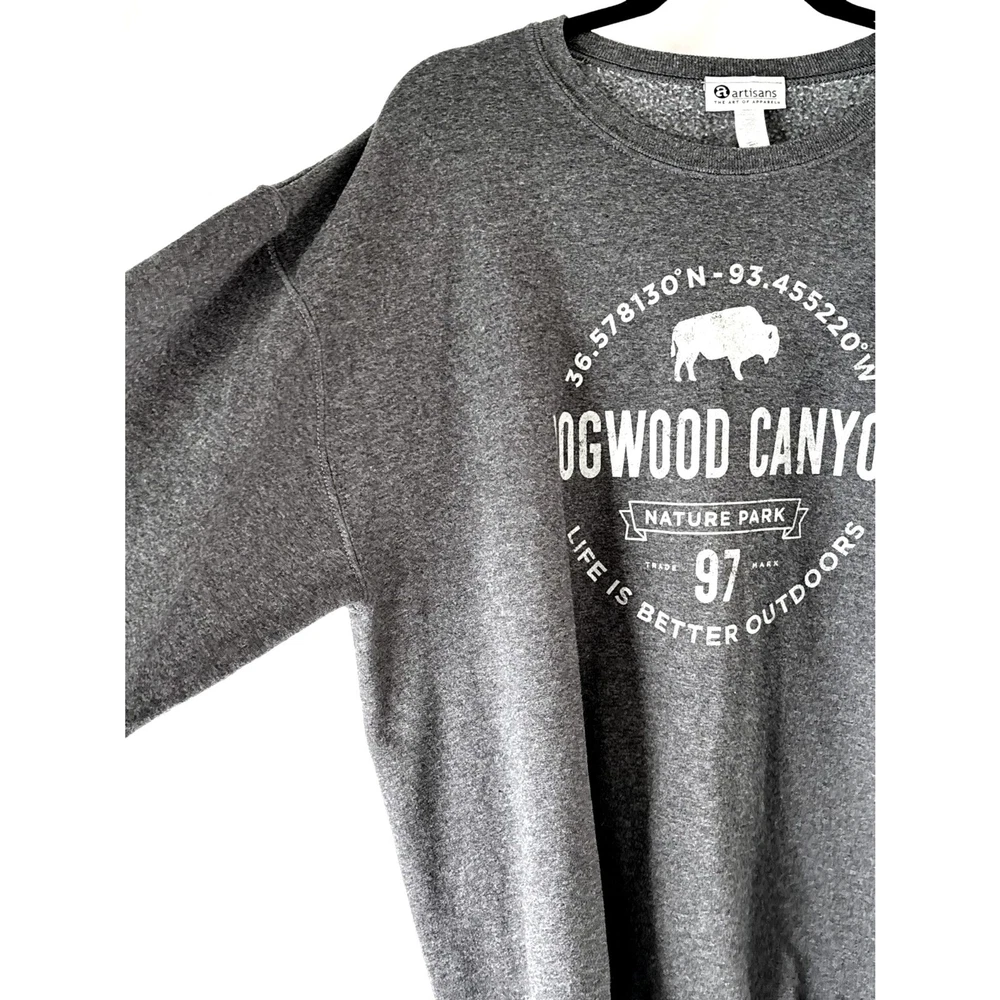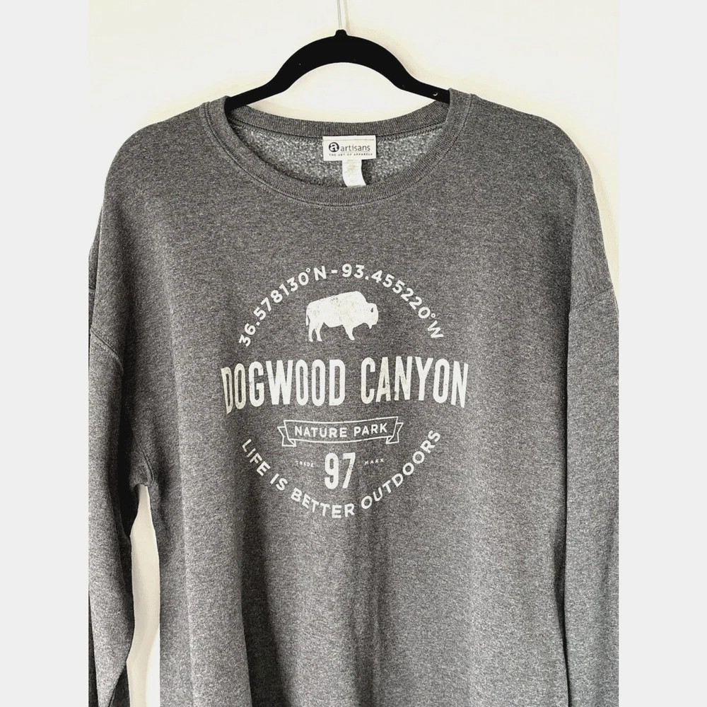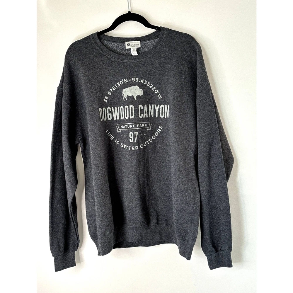 Dogwood Canyon Graphic Sweatshirt by artisans New York Size XL a15 ❤️ preowned but in excellent condition and has plenty of wear left ❤️ approximate measurements laying flat: - pit to pit 25" - length from tip of shoulder 28" ❤️ listed under men's category- see measurements ot make sure it fits- can be men's or women's in my opinion TAGS: graphic sweatshirt, cozy, casual, lounge, outdoor, classic, neutral