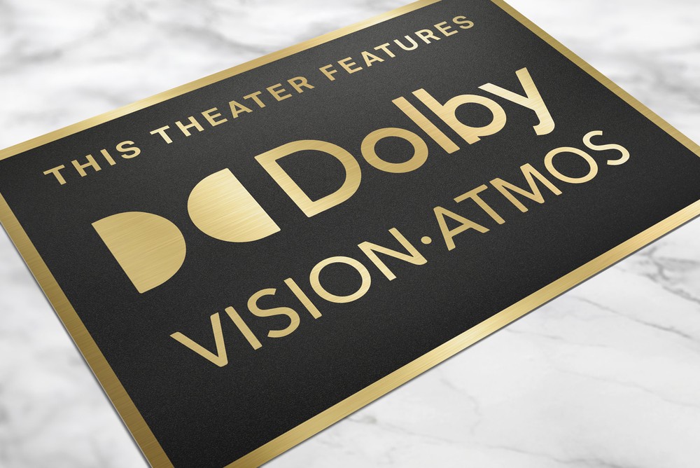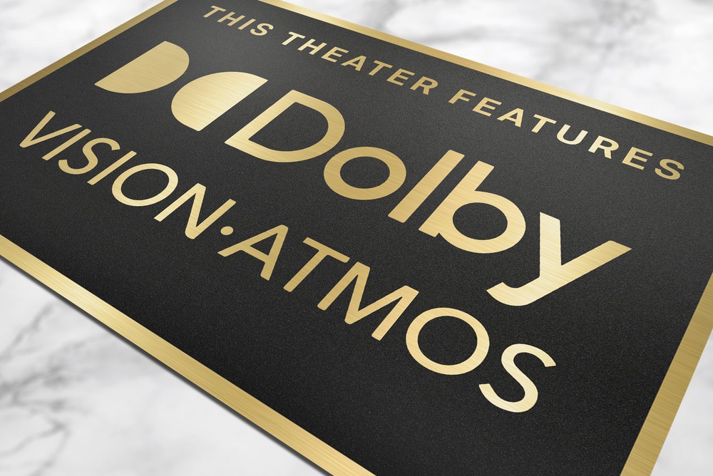 Dolby Vision Atmos Home Movie Theater Sign Custom made home theater signs. Perfect for your home theater/ man-cave setup Our signs are made out of brushed gold aluminum We include double-sided 3M tape for easy hanging just about anywhere Size - 12inch x 8inch our signs are custom made in the USA We have very fast shipping and offer money back guarantee Do not see a sign you need, let us know and we can custom make it for you