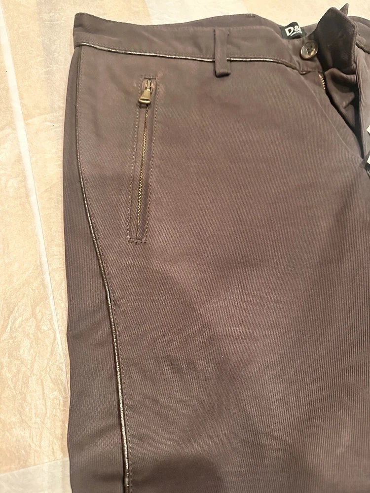Elevate your wardrobe with these stylish Dolce & Gabbana pants for men. Crafted from high-quality cotton, these pants feature a comfortable mid-rise fit with a 36-inch inseam and a 5-pocket design. The pants come in a classic brown color with button, zipper, and logo accents that add a touch of sophistication to your casual or dressy look. Perfect for any occasion, these pants are suitable for winter, fall, and spring seasons. Whether you're dressing up for a night out or going for a casual weekend look, these Dolce & Gabbana pants will make you stand out. The pants are available in size 50 with a waist size of 36 inches, making them a great fit for most men.