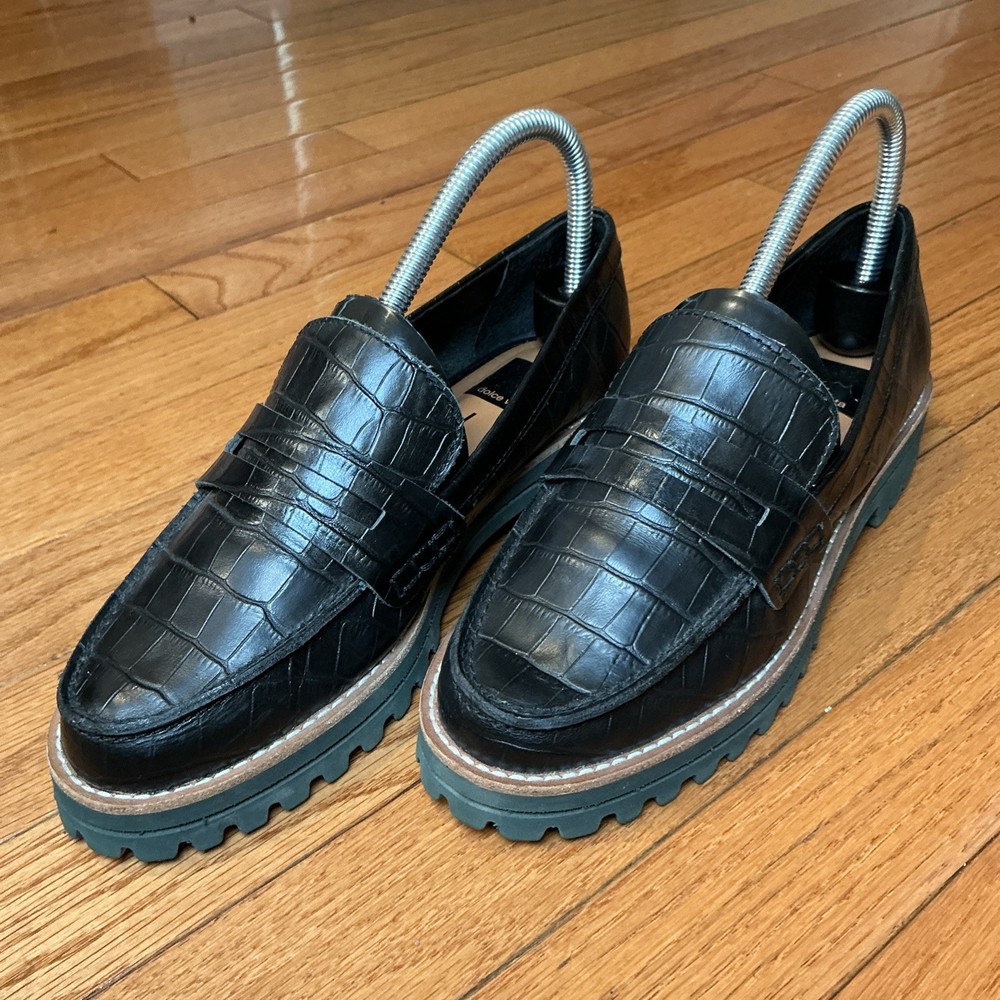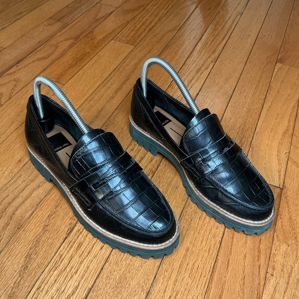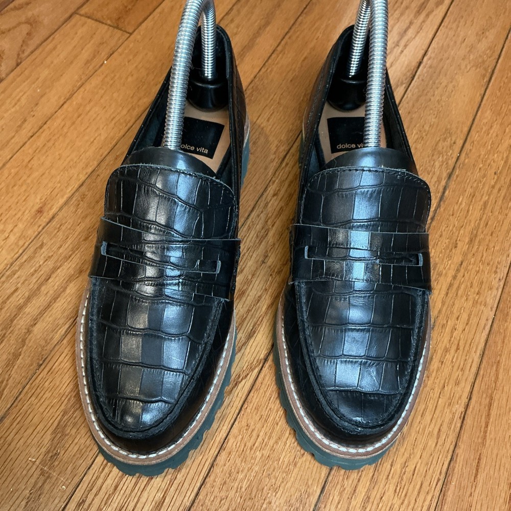 Dolce Vita Women's Aubree Almond Toe Embossed Leather Loafers Size