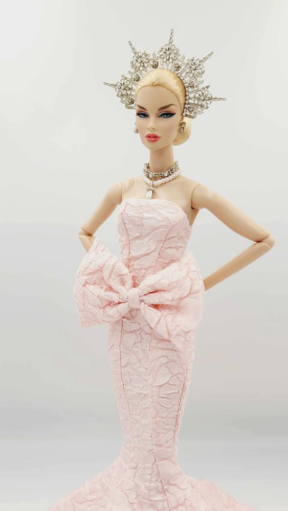 1. When t.d.fashiondolls has an unannounced 'sale', I jump at the chance to get a beautiful fashion at an unreal low price. This dress does not disappoint. It is lovely, well tailored and sewn properly. I always check to see if one of these 'sales' pops up when I'm on Ebay. Shipping was quite fast, packaging was neat and tidy, and the dress was identical to the one pictured.