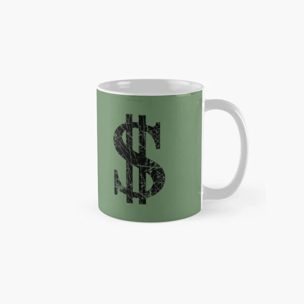 Dollar Sign Cash C-handle Glossy Ceramic Mug Premium Gift 11oz 15oz