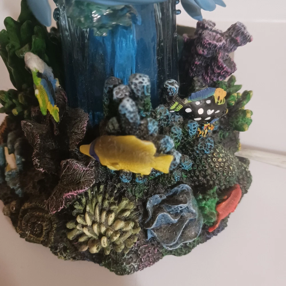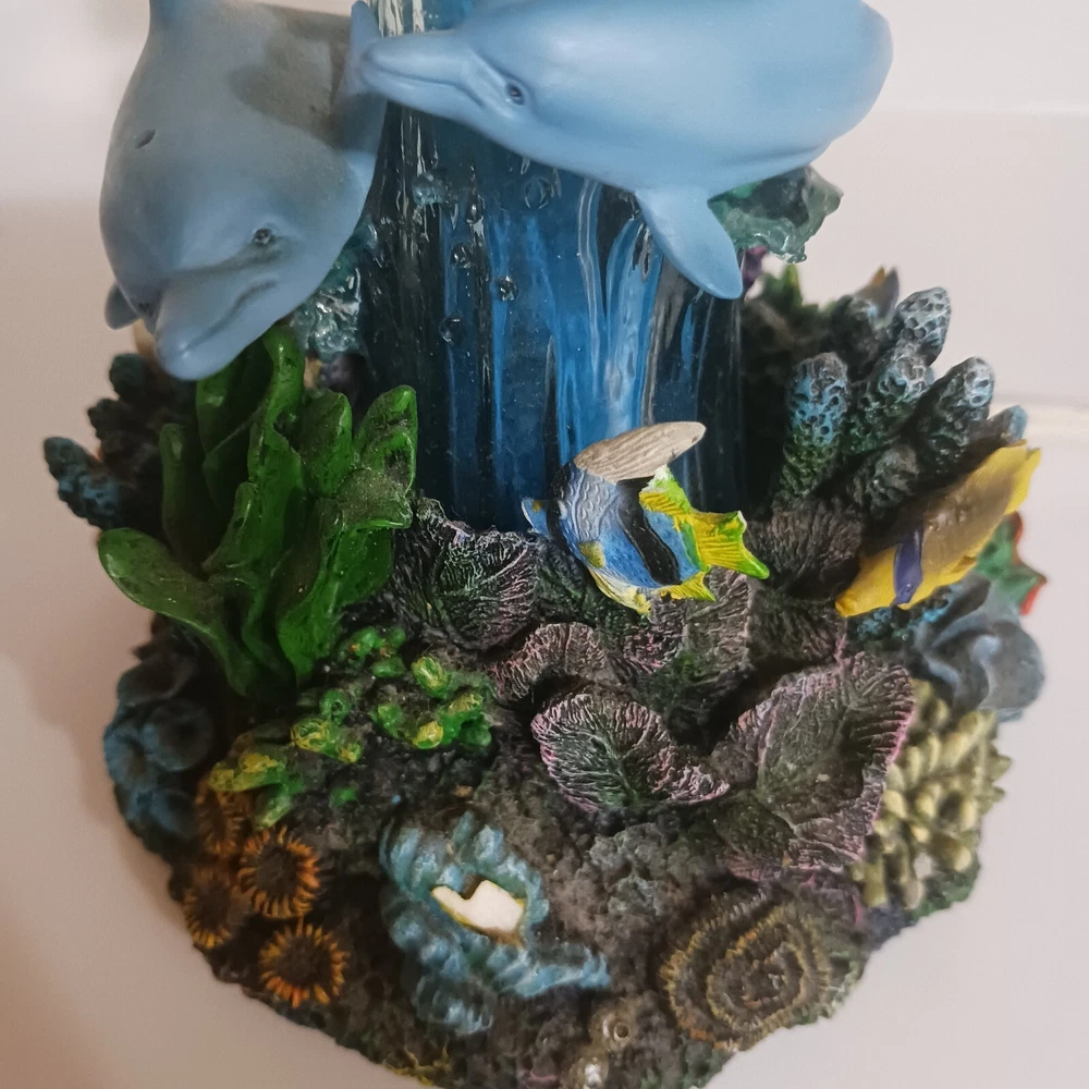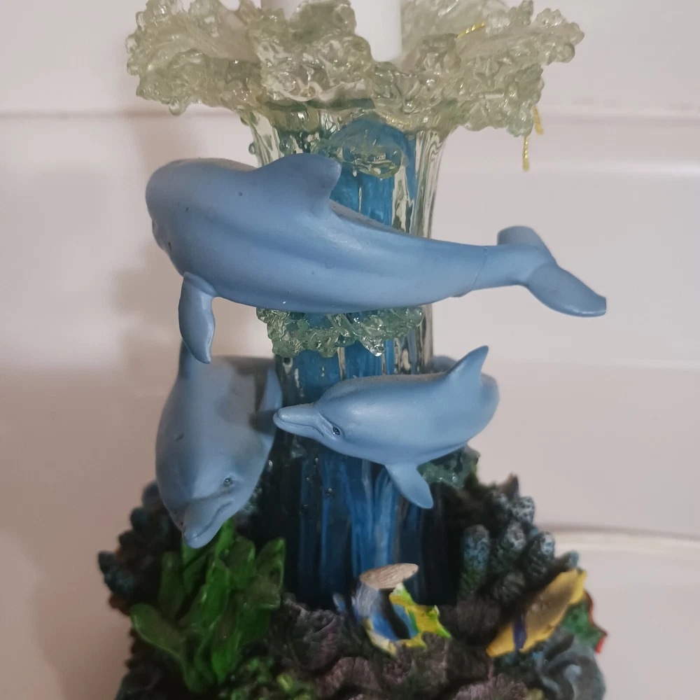 Smoke-free petfree packed with care Sculptured Dolphin Art Lamp. 10 inches tall no chips New with tag Uses nightlight bulb sealife dolphins, fish and vegetation Tested