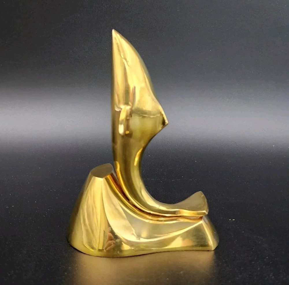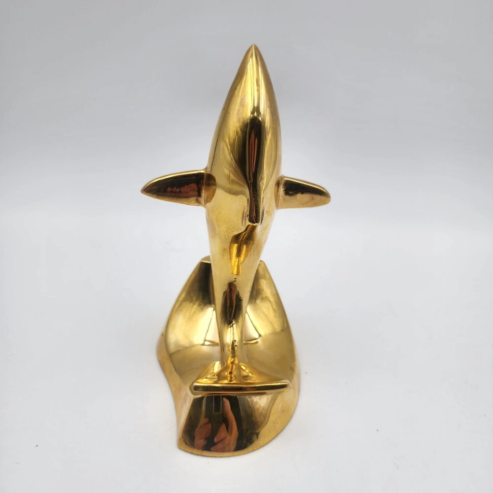 Brass dolphin weighs 14 oz, measures 2"x4"x5"H Wood dolphin weighs 1.8 lb, measures 9"Lx3.5"D