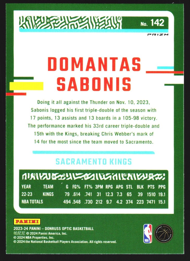 You will receive a Near Mint or Better, Domantas Sabonis, 2023 Donruss Optic, , Sacramento Kings card PLEASE NOTE: SOME CARDS THAT GO THROUGH OUR SCANNER MAY APPEAR TO HAVE LINES THROUGH THEM. THEY ARE NOT ACTUAL SCRATCHES, SIMPLY FALSE IMAGE LINES. WE WILL NOT INTENTIALLY SELL, DAMAGED CARDS. NEW CARDS LISTED DAILY ORDERS SHIP NEXT DA Y (Weekends as mail service is available) VISIT OUR STORE FOR MORE DEALS! USE THE SEARCH ICON IN THE STORE TO FIND YOUR FAVORITE TEAMS & PLAYERS! Be sure to save us as sellers to be the first to be notified when new and exciting cards are posted! Please note, we are not professional graders, and the condition of the card you purchased is highly subjective. Please refer to the high quality scans of the card you are viewing, and determine the condition of the card for yourself. Feel free to reach out with questions! All cards are in EX-NM+ condition, unless stated otherwise Chrome cards from various brands might have minor light surface scratches, which is typical with these type of cards. Any major, deep scratches or major surface issues will be noted, if present. We take pride in the condition of all of our cards, including commons. Our promise to you, is that we will not sell a card we would not buy ourselves. Of course things slip by, however customer service is our #1 Priority, and we are always here for a message for ANY, and ALL issues. Thank you very much for stopping by, feel free to reach out! - Titan (Son) & Andy (Dad)