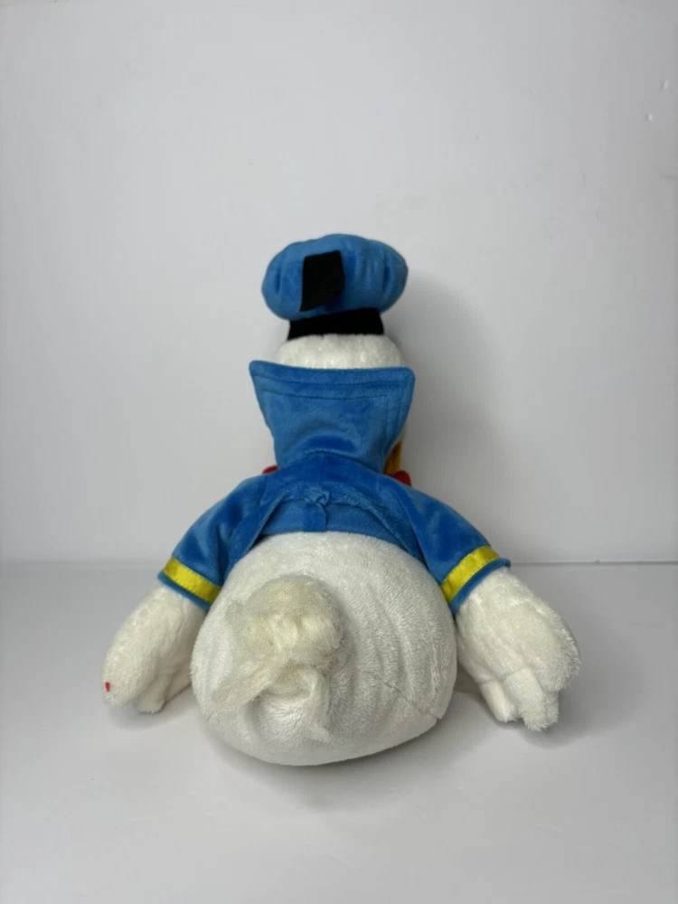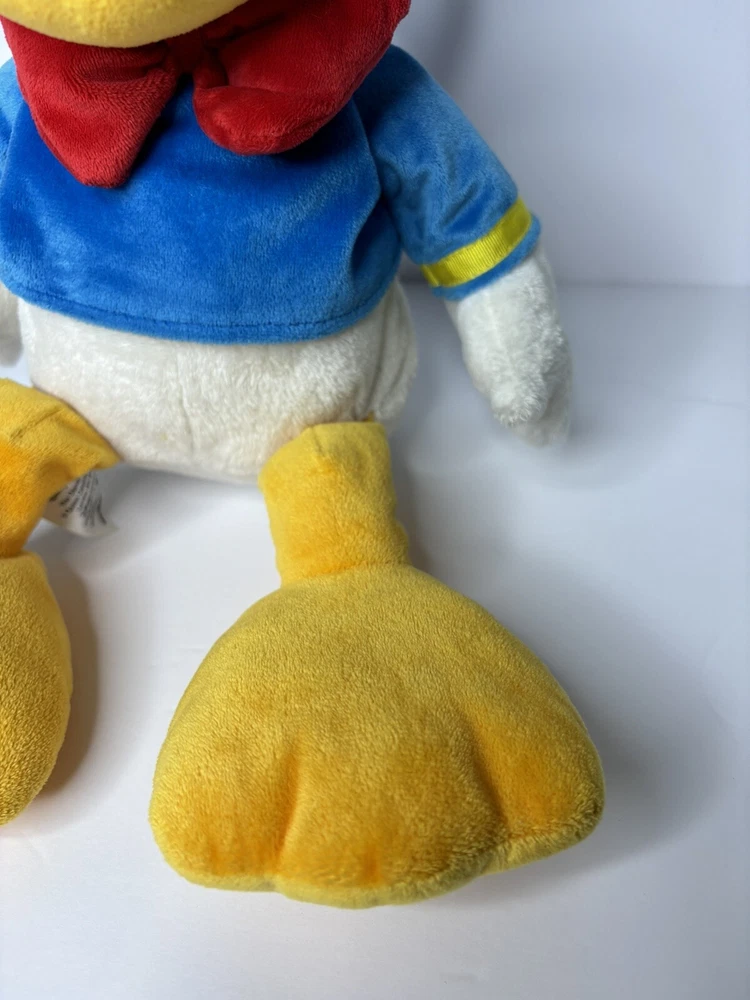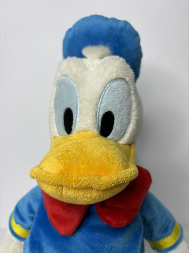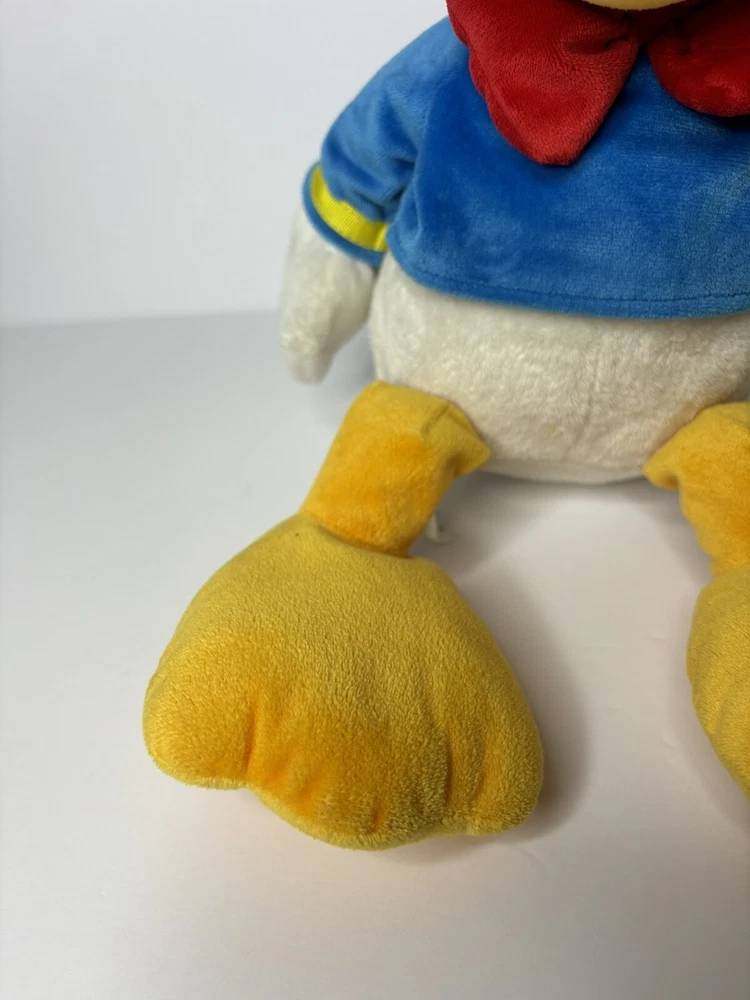 Bring home the magic of Disney with this exclusive 18" Donald Duck plush from the Disney Store. This retired plush toy features the beloved character in his classic pose and is made with high-quality materials for lasting durability. Perfect for collectors and fans of all ages, this plush toy is a must-have addition to any Disneyana collection. Made in Vietnam and featuring the iconic Donald Duck character, this plush toy is sure to bring joy to any fan of the franchise. Don't miss your chance to add this rare item to your collection!
