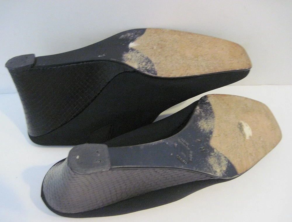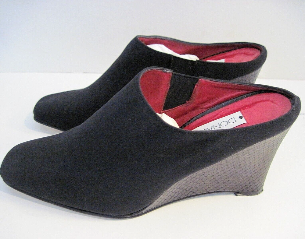 Donald J.Pliner Stretch Black Fabric Closed Toe Snake Wedge Bootie Heels Size 7 M. Snake Wedge Heel Measures 3 3/4". Hand Made In Spain. Gently Used. 3 F