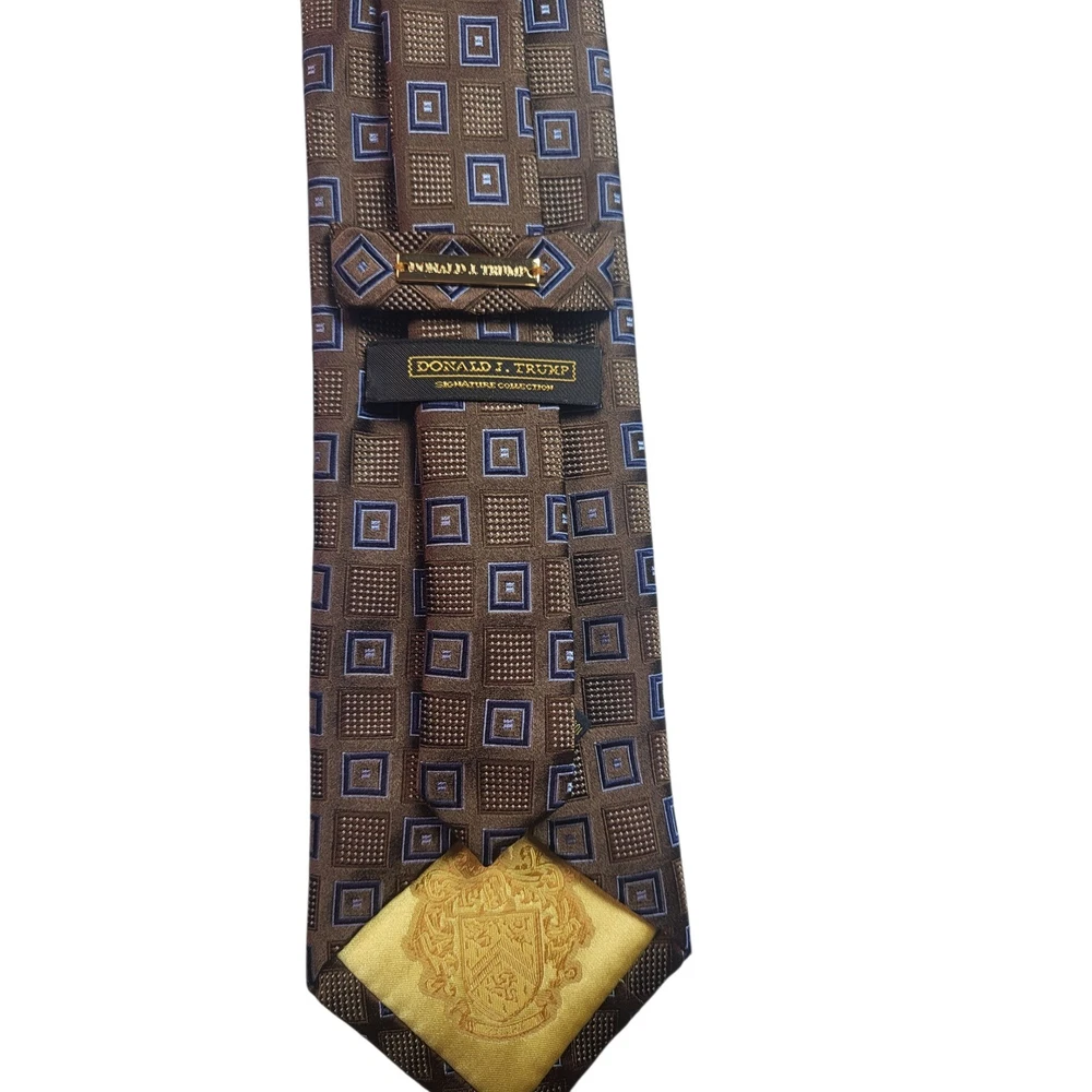 Elevate your professional wardrobe with this distinguished collection of Donald J. Trump neckties. Each tie exudes sophistication and confidence, making a statement in any setting. The set includes four unique designs: a classic red geometric pattern, a navy blue striped design, a solid navy blue tie, and a gray geometric pattern. These ties are perfect for adding a touch of elegance to your business attire or for making a lasting impression at formal events. Imagine yourself commanding attention in the boardroom or exuding charm at a wedding reception with these refined accessories. Color: Blue Department: Men Type: Tie Material: Silk, 100% Silk Style: Designer Pattern: Striped Character: Career, Business, Sophisticated, Elegant, Classic Accents: Logo, Geometric, Striped Fabric Type: Silk Blend Keywords: Donald J. Trump, necktie, tie, silk tie, mens tie, dress tie, business tie, career tie, formal tie, geometric, striped, navy blue, red, gray, lot of ties