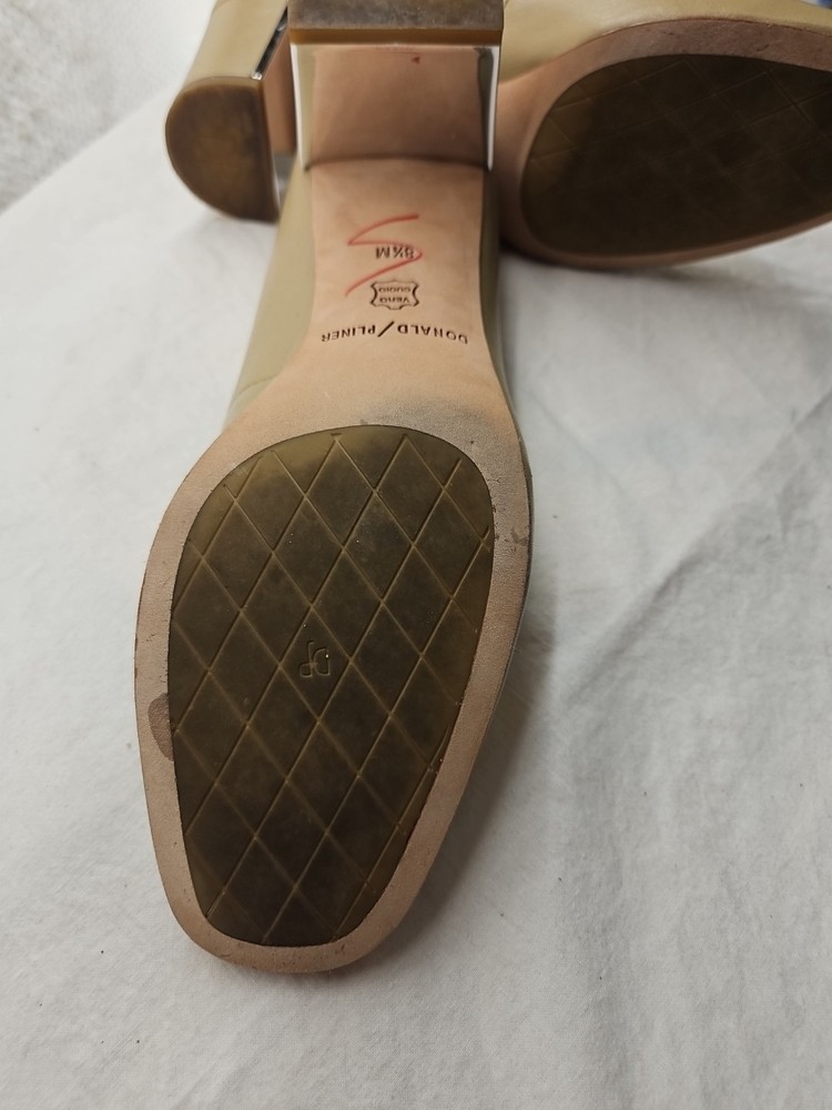 Elevate your style with these stunning Donald Pliner Coran 2 Model Mirrored Block Heels. The square toe and slip-on closure make them easy to wear, while the mid heel height provides a comfortable lift. The brown color and logo accents give them a touch of elegance, perfect for any business or formal occasion. Crafted with high-quality leather, these pumps are durable and stylish. The outsole material is also leather, making them perfect for any season. These shoes are a must-have for any fashion-forward woman who wants to look her best. Very gently used as seen in photos...B1106