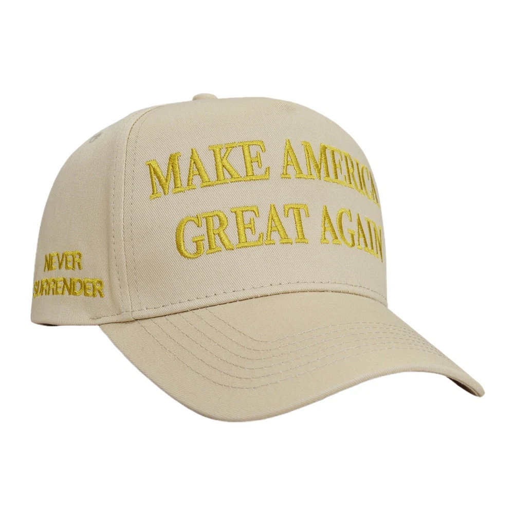 Donald Trump Hat 45-47 Never Surrender MAGA Beige Hats America Great Gold Hats Features: 1. Show your support for the 2024 election with this "Make America Great Again" baseball cap. 2. Crafted with materials for comfort and durability during rallies or everyday wear. 3. Adjustable strap for a , making it suitable for all head sizes. 4. Classic design featuring colors and slogan, perfect for expressing your views. 5. Ideal for and family passionate about politics and the upcoming election. Product Description: Make America Great Baseball Cap 2024 - Election Campaign Snapback Hat Size Head circumference(Adjustable) One Size 54-62cm/21.26-24.41'' Size:One Size Head circumference(Adjustable):54-62cm/21.26-24.41''