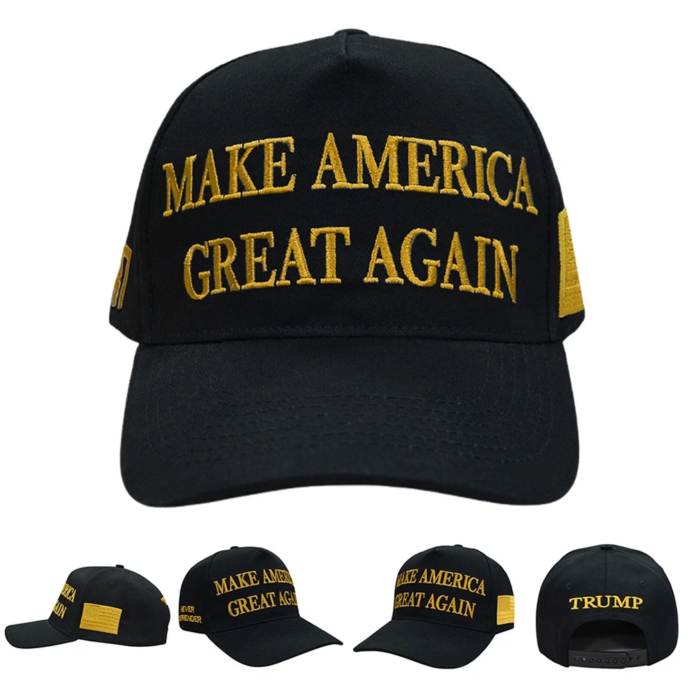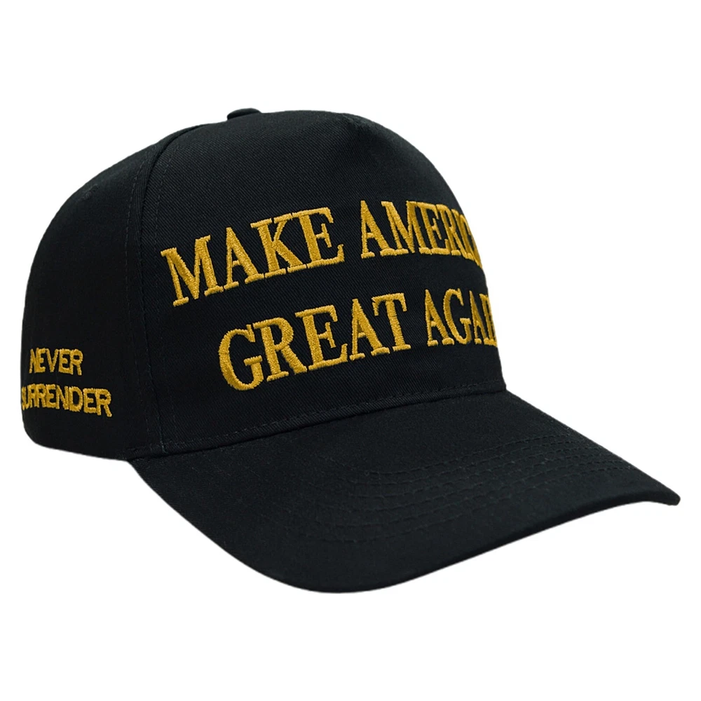 Donald Trump Hat 45-47 Never Surrender MAGA Black Hats America Great Gold Hats