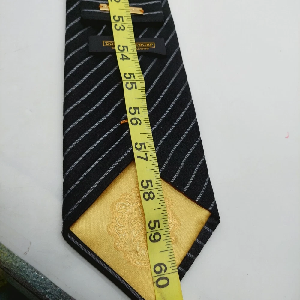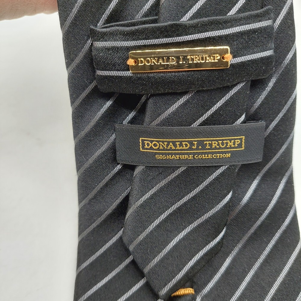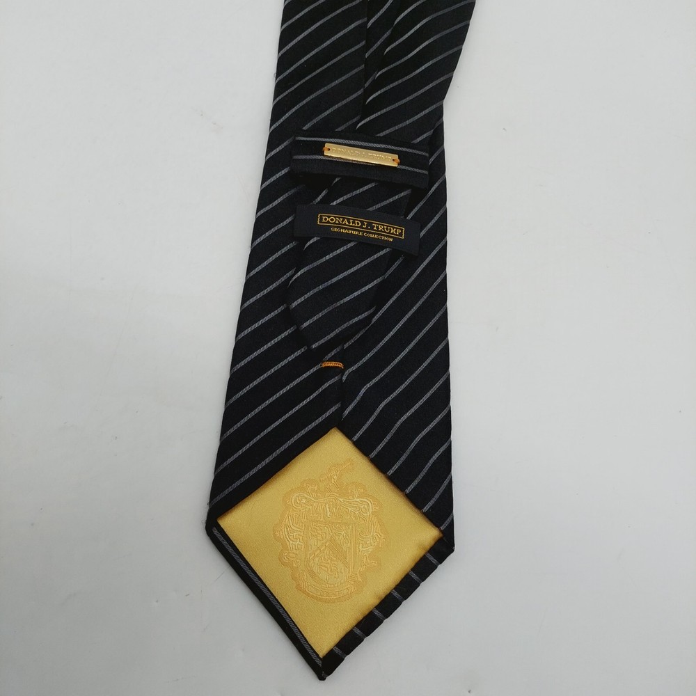 Pattern:StripedBrand:Donald J. TrumpItem Width:WideUPC:Does not applyTheme:StripedColor:BlackItem Length:Classic (57"-60")Material:100% SilkStyle:Designergtin13:Does not applySize:59" x 3 7/8"Fabric Type:WovenDepartment:MenAttachment Type:TiedType:Tie
