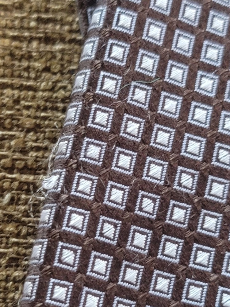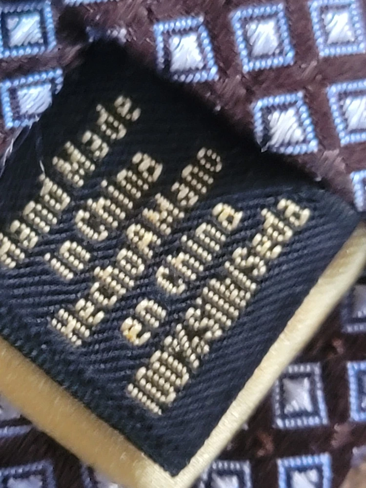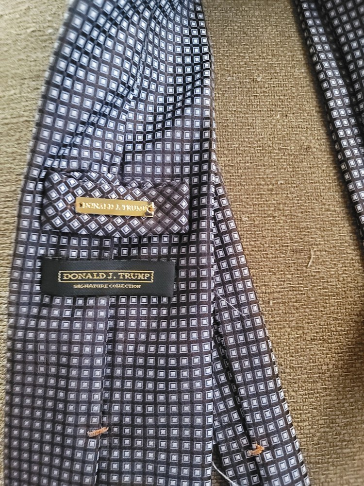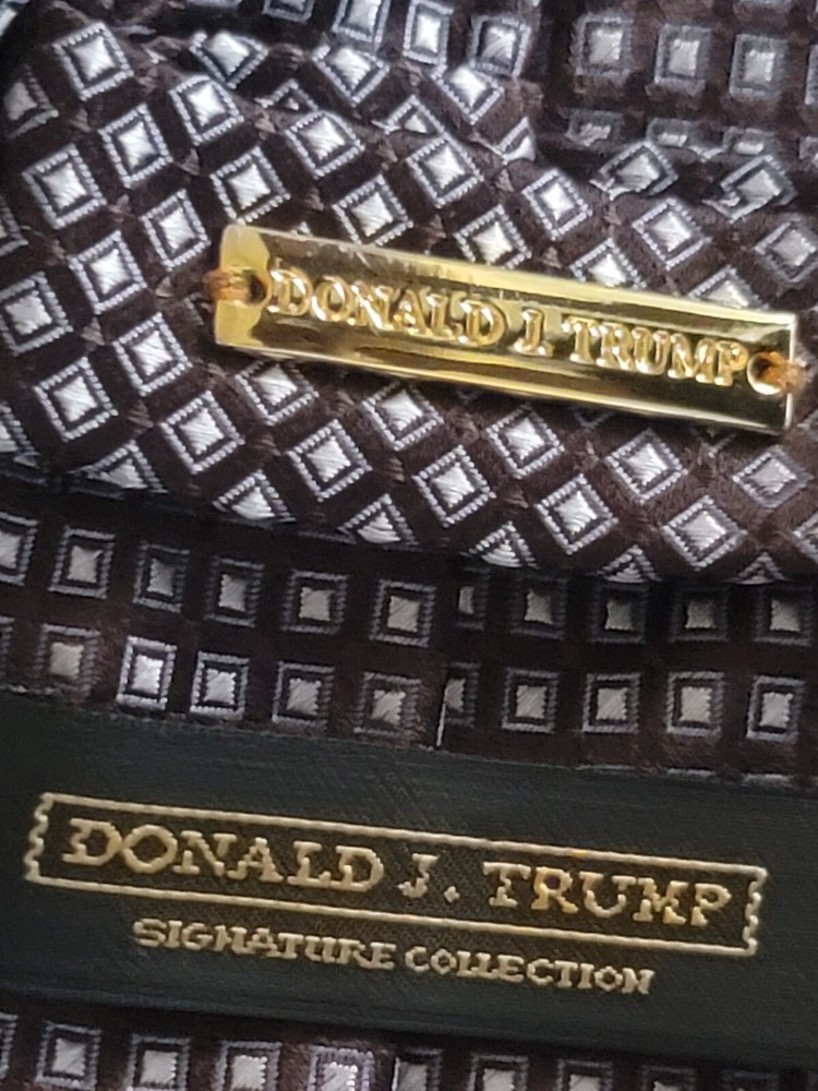Elevate your formal look with this stunning Donald J. Trump Signature Collection silk tie. The brown and light blue checkered pattern adds a touch of sophistication, while the high-quality silk material provides a luxurious feel. This tie is perfect for any occasion and will complement any outfit. The tie is designed specifically for men and belongs to the Men's Accessories category. It is perfect for completing a formal outfit and will make you stand out from the crowd. This tie is made of high-quality silk material which ensures durability and longevity. Add this stylish tie to your collection and take your style to the next level. There is some wear. See photos