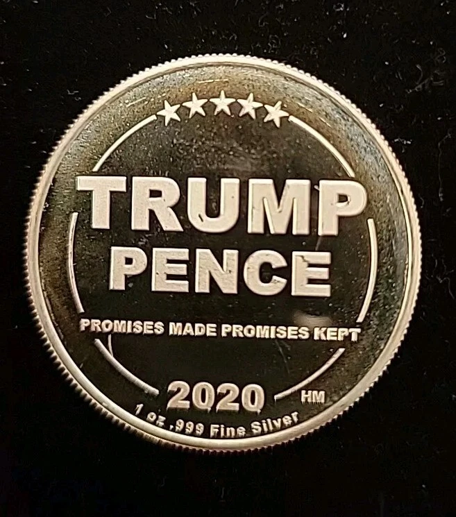 This 1 oz .999 silver round is a must-have for any supporter of Donald Trump. It features a promise made and a promise kept design, with the year 2020 printed on the round. The round is composed of pure silver, making it a valuable addition to any collection. The shape of the round is perfect for stacking and storing, while the fineness of the silver ensures its quality. This item is a versatile investment for any collector. Add this Trump/Pence Rally Promise Round to your collection today.