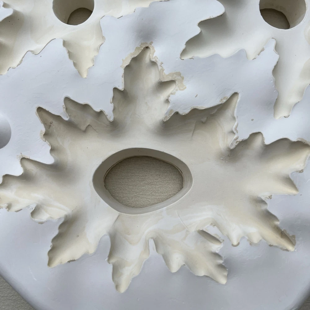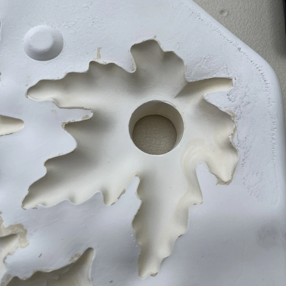 The Dona's Molds Inc. D803 Maple Leaf Bases Vintage 1990 Ceramic Mold Slip is a collectible and rare piece for those interested in crafting and sculpting ceramics. Made of plaster, this mold allows for the creation of unique and detailed maple leaf bases for various ceramic projects. With a vintage touch from 1990, this product offers a glimpse into the past while still providing a fun and creative outlet for pottery enthusiasts. Whether used for personal or artistic purposes, this slip mold adds a special touch to any crafting collection. I used plaster of Paris in this mold a few times may have some residue along edges, this does not affect pour. See photos.
