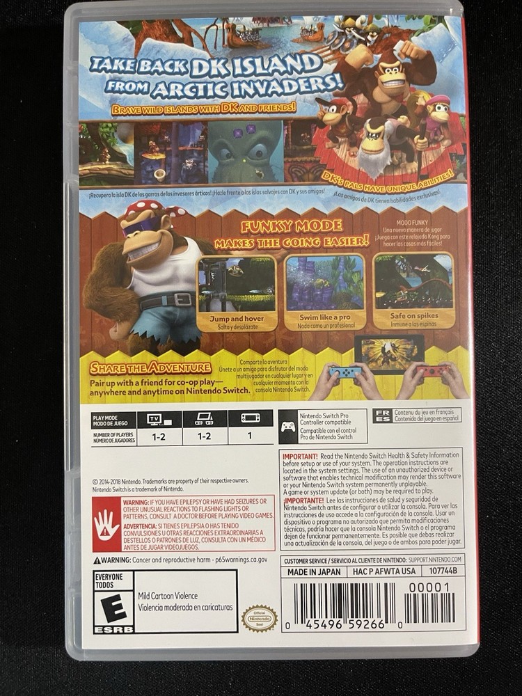 The Donkey Kong Country: Tropical Freeze Nintendo Switch game is a 2018 platformer that is part of the beloved Donkey Kong Country series. With its multiplayer feature, players can enjoy competing in this fun and engaging game together. The game is rated E for Everyone, making it suitable for players of all ages to enjoy the classic Donkey Kong gameplay on the Nintendo Switch platform. The game comes in a case for easy storage and protection. Made in the United States, this game promises hours of entertainment for fans of platformer games.