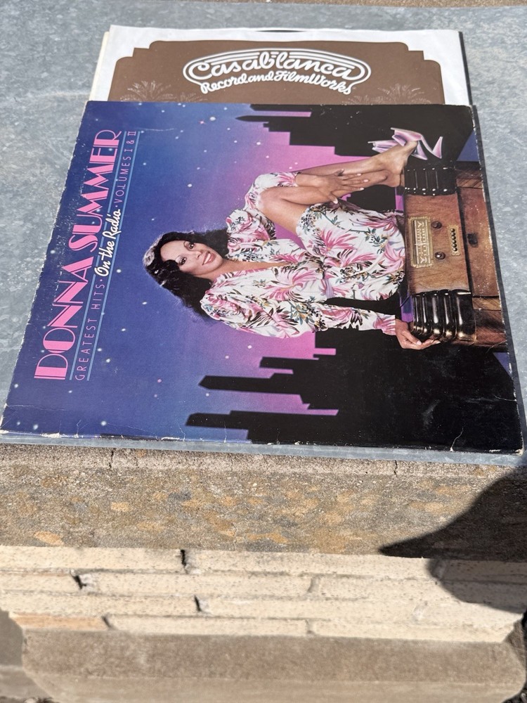 The product is a set of two vinyl LP records by Donna Summer titled "On The Radio Volumes I & II". Released in 1979 under the record label Casablanca, the records showcase the artist's signature disco style. The black vinyl records feature English language lyrics and are 12" in size, making them a must-have for fans of 1970s disco music. Made in the United States, these records capture the essence of Donna Summer's iconic sound and are a valuable addition to any music collection. Descent condition, very few scratches & tested through, played well.