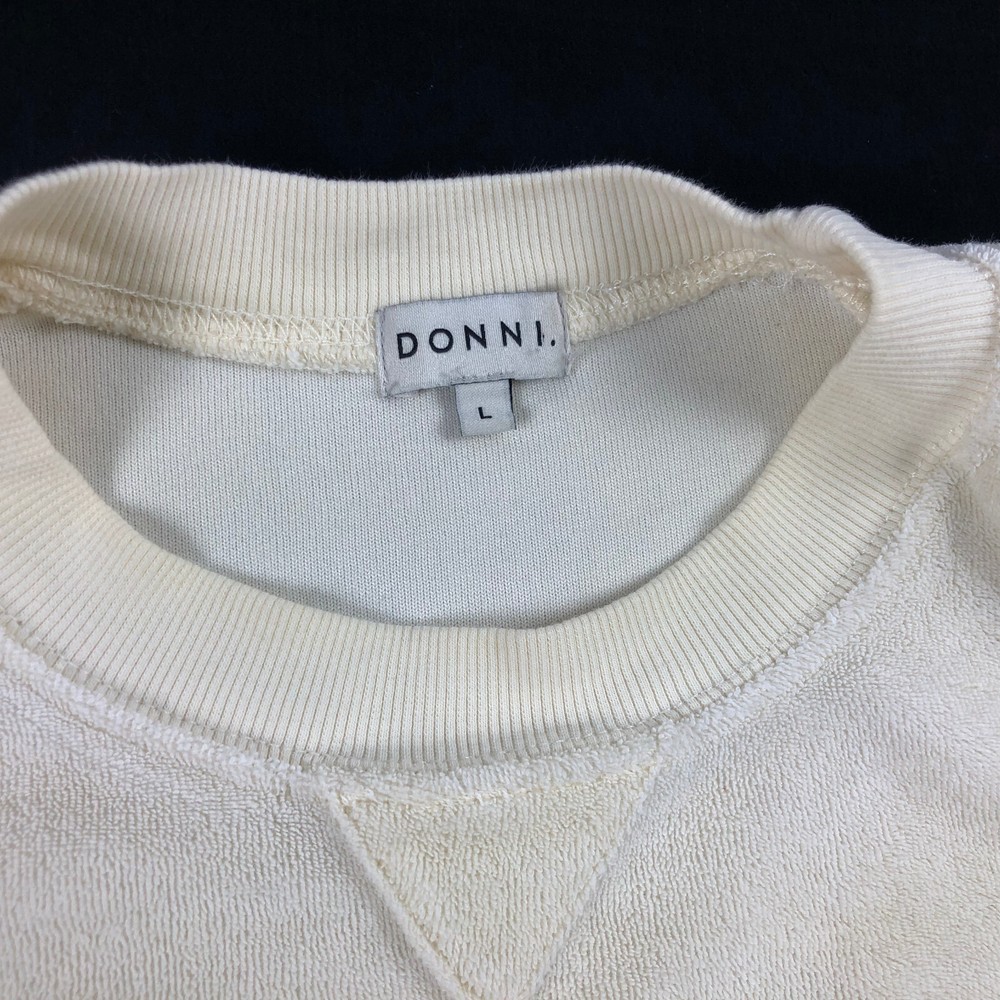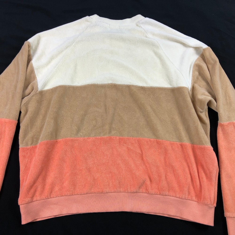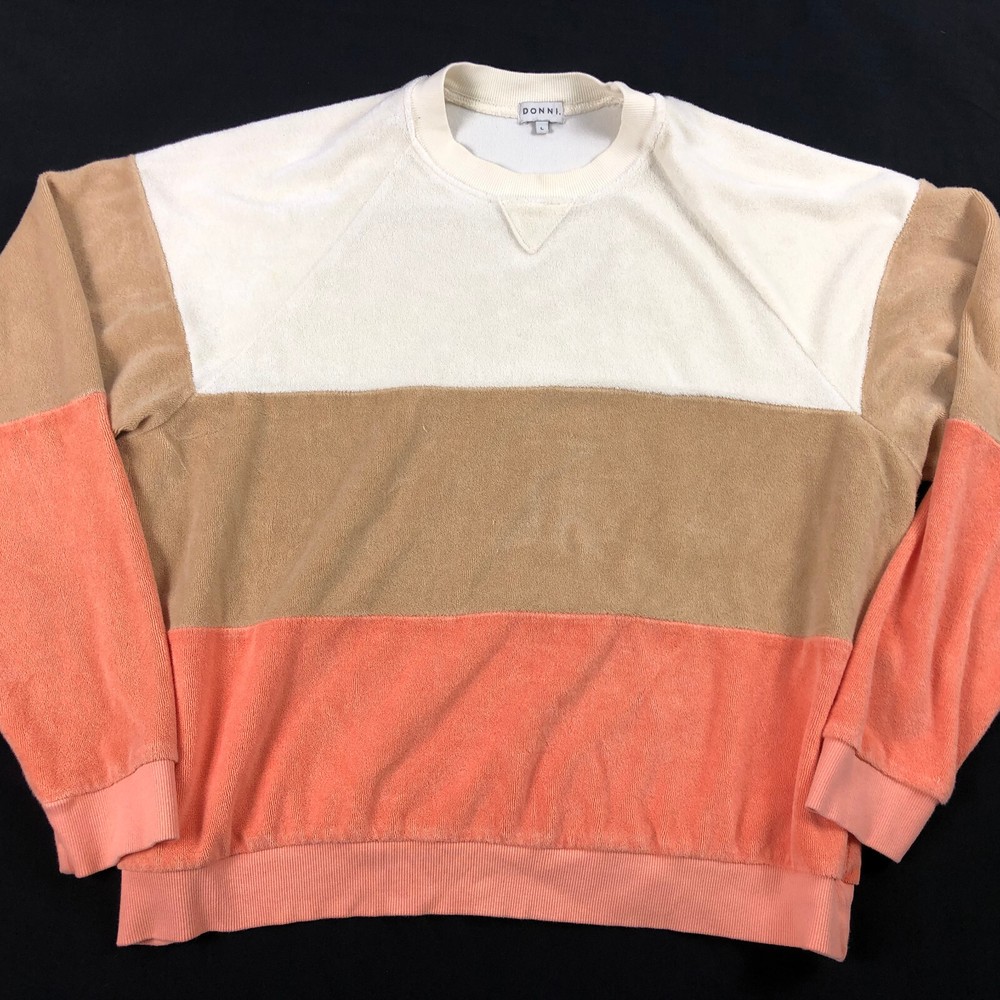 Donni. Terry Sweatshirt Top Women's Size Large Chest: 24" Length:22" Orange Beige Ivory Stripe Crew neck Long Sleeve Terrycloth perfect for fall~