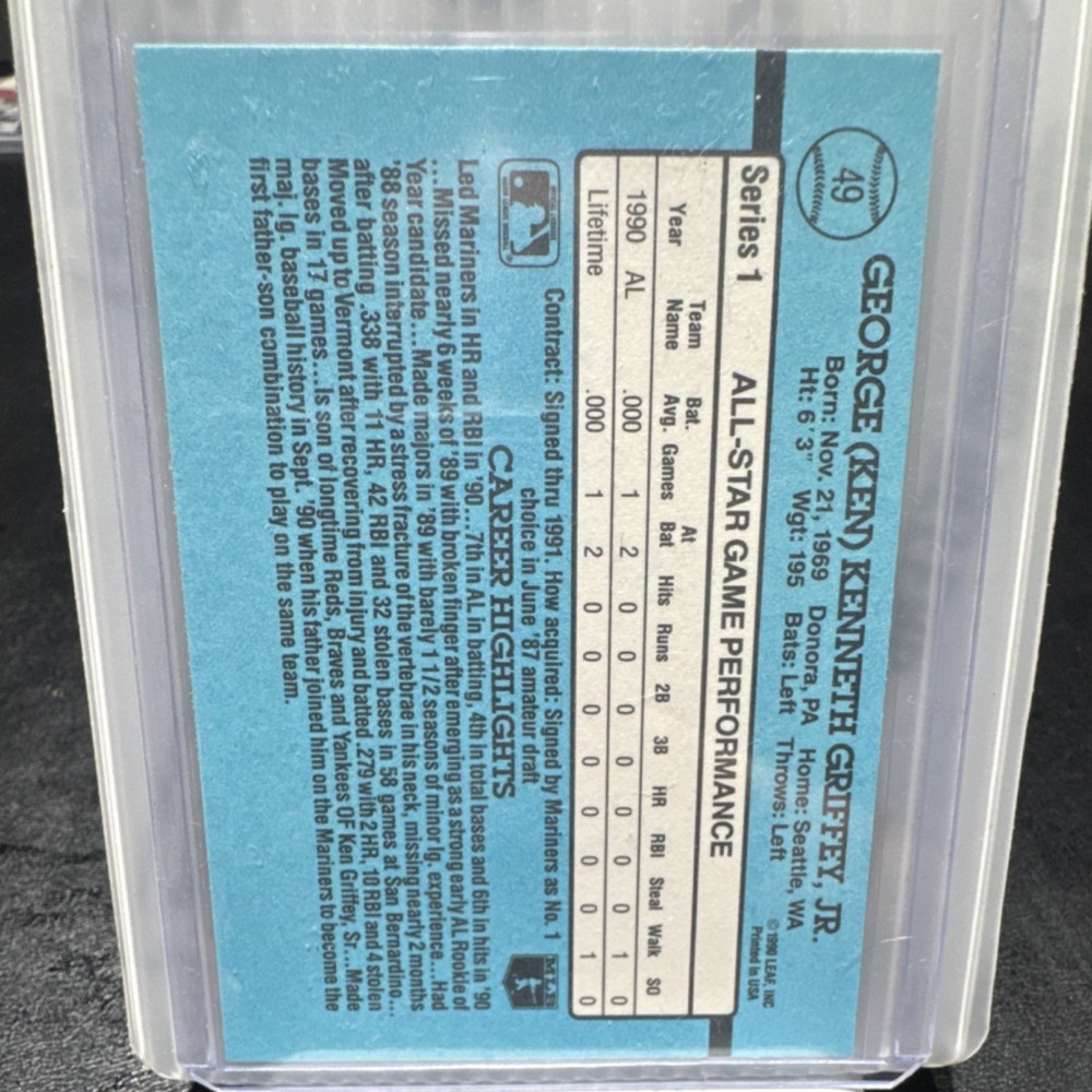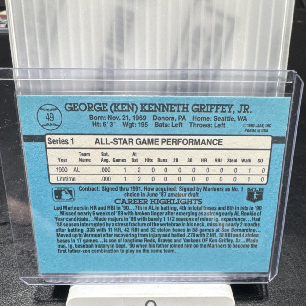 1991 Donruss Ken Griffey Jr. All-Star Error card No *DOT* after the INC GEM MINT condition
