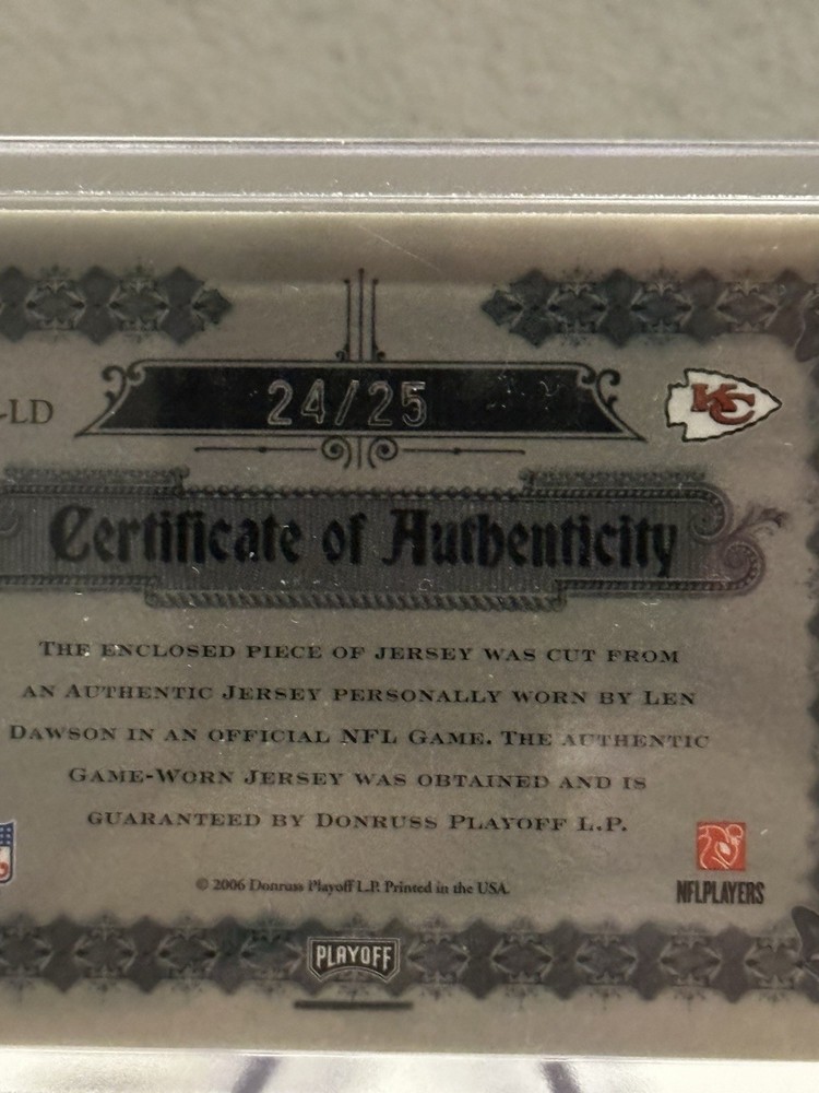 Donruss Playoff National Treasures Len Dawson Auto Jersey /25 Chiefs 2006