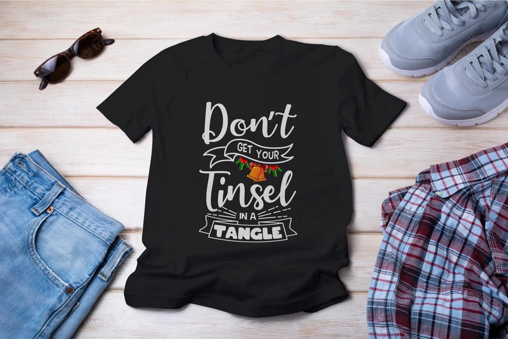 Don't Get Your Tinsel In A Tangle Funny Christmas Costume T shirt basic