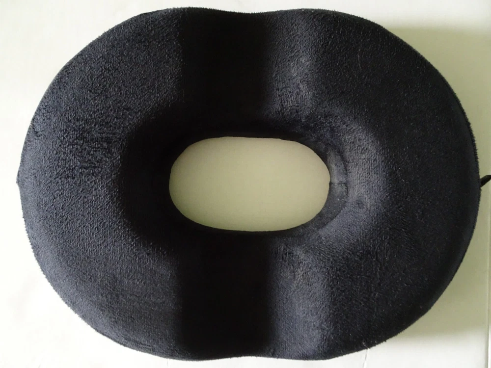 Kieba Donut Tailbone Cushion Pillow 18 Inches Ultra Premium Comfort Foam (Black) Like New Excellent Condition 17.8 x 13.8 x 2.8 inches Velour MAXIMUM RELIEF AND COMFORT - Reduces pressure on pelvic, coccyx, lower back, and perineum. Relieves pain from hemorrhoids, pressure ulcers, prostatitis, pregnancy, child birth, and lower back pain. DURABLE - Made of dense premium comfort foam. Will not flatten out with prolonged use. Will not deflate like inflatable donut cushions. Non-slip bottom ensures the cushion stays in place and will not shift or slide on any surface. ERGONOMIC - Promotes good posture and healthy weight distribution for hours of comfortable sitting. USE ON ANY SEAT - Great for use on any chair, car seat, plane, and wheelchair. EASY CLEANING - Removable velour cover is machine washable for easy cleaning.