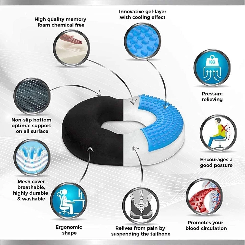 Donut Pillow Seat Cushion Orthopedic Design| Tailbone & Coccyx Memory Foam Pi...