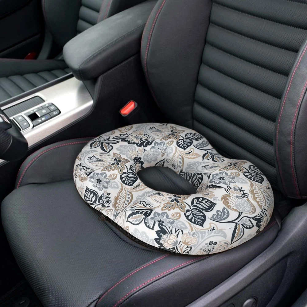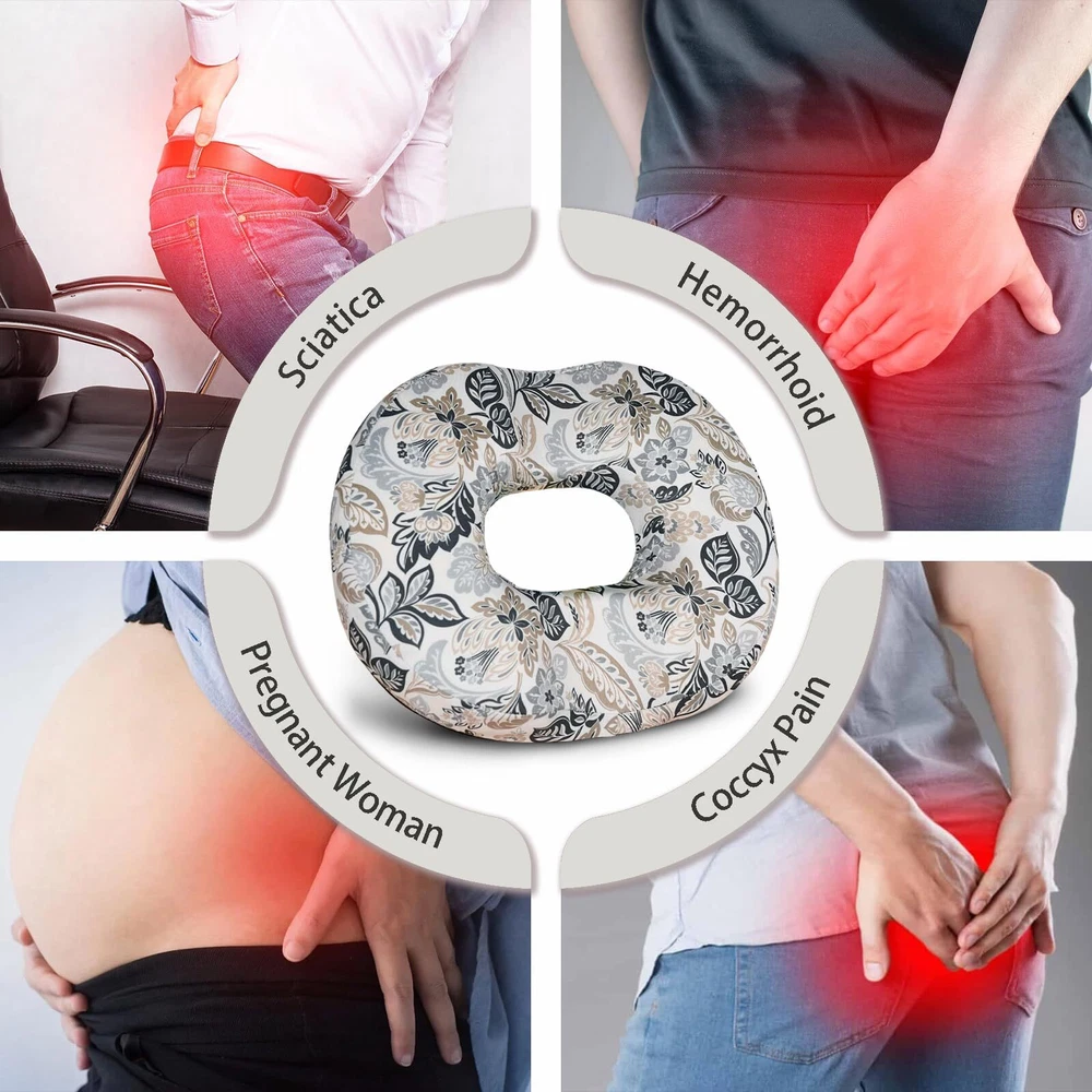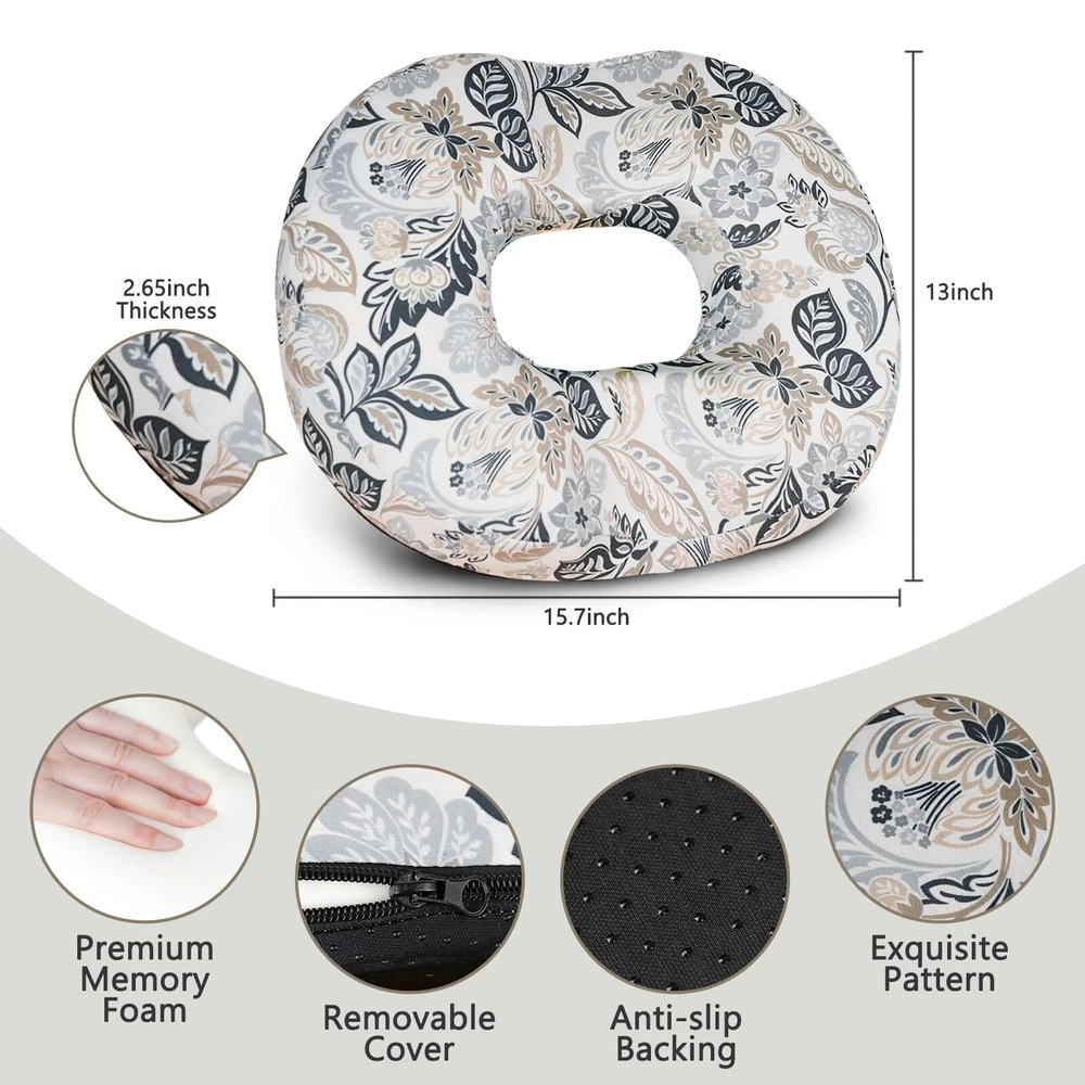 【Premium Memory Foam Donut Pillow】Our donut cushion is made of premium high-density memory foam, the memory cotton inner core has a slow rebound feature, so this doughnut pillow will maintain shape even after many uses. With heat responsive, our donut seat cushion can sense body temperature to fit the body curve to provide the best comfort and relieve pain 【Donut Design】With "donut hole" design, this donut seat cushion evenly distributes weight, reducing hip pressure when in use and effectively reducing pressure on the tailbone and butt, thus alleviating hemorrhoidal pain and relieving discomfort caused by sitting for long periods of time. Ideal for postpartum women, hemorrhoids, tailbone pain, etc 【Multi-Scene Use】Our butt donut measures 15.7x13x2.65 inches, which is suitable for most occasions with various seats, it can be used as a donut cushion to relieve tailbone pain at home, in office, or on travel. And this hemorrhoids seat cushion can be used for any type of chair, such as wheelchair, office chair, airplane seat, car seat, dining chair, etc 【High Quality hemorrhoids Seat Cushion】Non-slip rubber bottom keeps the hemorrhoid cushion in place even when moving on the seat. Eyelet mesh fabric cover give you a breathable and cozy experience. With zippered, you can remove the cover then machine washable at low temperature, tumble dry at low temperature 【Perfect Gift】Well-designed by a professional team of designers, the pattern of our donut pillow seat cushion is unique in the market. So you can make it as a perfect birthday or holiday gift for family, friends, workmates, grandparent, puerpera, patients with hemorrhoids or tailbone pain