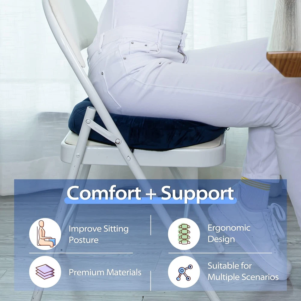 【Premium Memory Foam Seat Cushion】The memory foam donut cushion core is made of high-density, slow-rebound memory foam that provides strong support. It will not deform even after long term use. Memory foam has a heat-sensing function that senses body temperature to fit the body's curves and provide optimum comfort. 【Ergonomic Design】The contoured area of the butt pillow provides effective support for hips and thighs. Hollow design in the centre of the tailbone cushion relieves hemorrhoids and post-operative pain. The ergonomic U-shaped groove design reduces pressure on the tailbone from sitting for long periods of time. 【Washable Velvet Pillowcase】The surface of the pillowcase is made of great soft velvet and the bottom is equipped with non-slip silicone. The smooth zip allows you to remove the pillowcase for washing at any time. However, please be careful not to leave the tail cushion on light-coloured leather material surfaces for a long time to prevent accidental staining. 【Ideal Cushion】This office chair cushion fits any type of chair and can make any uncomfortable seat cozy and relaxing. It is great for family and friends on special occasions such as birthdays, Christmas and Mother's Day. 【Kindly Note】For more effective and comfortable support, we recommend that the support weight of the sciatica pain relief pillow should ideally not exceed 180 lbs. The bottom of the cushion is non-slip silicone, so please do not place the cushion on the surface of light-colored leather materials for a long time to avoid dyeing the surface of the sofa and the seat by the cushion.