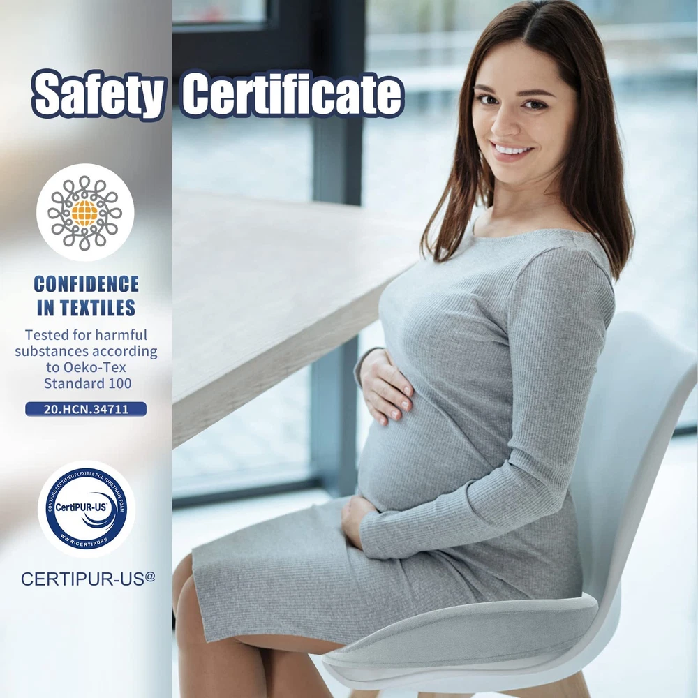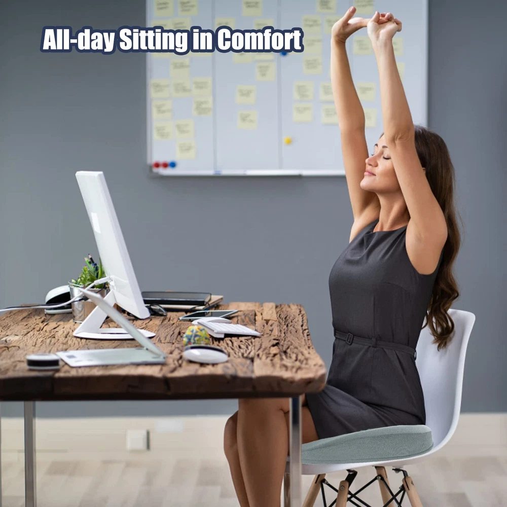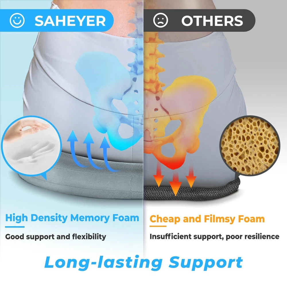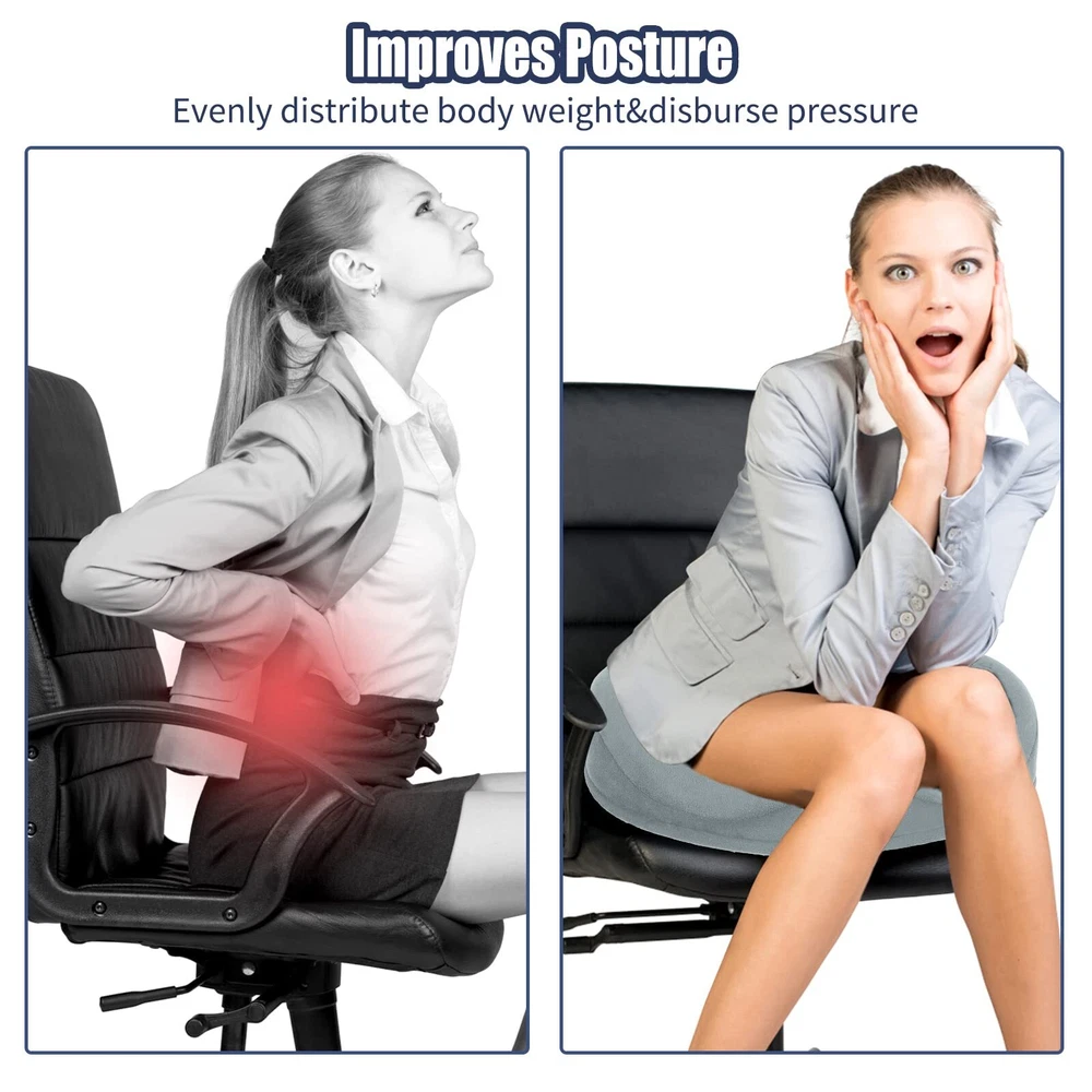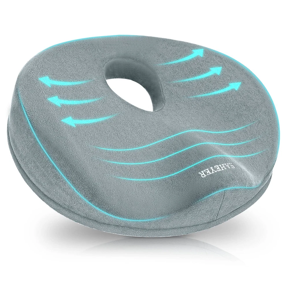 Tailbone Pain Relief Cushion: Are you troubled by tailbone pain caused by sitting for long periods of time? Are you suffering from headaches because hemorrhoids can only Stomach sleeping? 2 in 1 tailbone pain relief donut pillow can solve all of these problems. with ergonomic design, Fits your body perfectly anytime like tailored Ergonomic Design: Donut Pillow for sciatic nerve raised wrap on both sides to guide the correct sitting posture of the hips and relieve back pain and sciatica, middle decompression hole design to facilitate hemorrhoid repair patients while releasing tailbone pressure, and front concave design to fit the thighs and not cause leg numbness by squeezing the leg muscles for a long time. Multi-scene Use: This donut pillow for tailbone pain has anti-slip particles added to the bottom of the pillow. It can be used on any smooth surface or in office chairs, wheelchairs, car seats, etc. So no matter where you sit, this office chair seat cushion can relieve tailbone injuries, sciatica, hemorrhoids, herniated discs, hip pain, back pain during pregnancy, pear-shaped muscle syndrome and any other spinal problems. High Quality Memory Foam Donut Pillow: Donut Cushion Pillow made of 100% temperature-sensing memory foam, 60D perfect density formula is perfect for most people's comfort, with ergonomic design makes it fits your body perfectly like tailored., long time use will not cause the shape to flatten thus keeping the effect in the best condition. removable cover easy wash Size Description: L x W 14 "x17", Different heights in all positions due to ergonomic design, back: 2.5", highest point on both sides. 4", lowest point on front: 1.5", highest point on front: 3", this chair cushion for back pain will not lift you up too much from your normal view